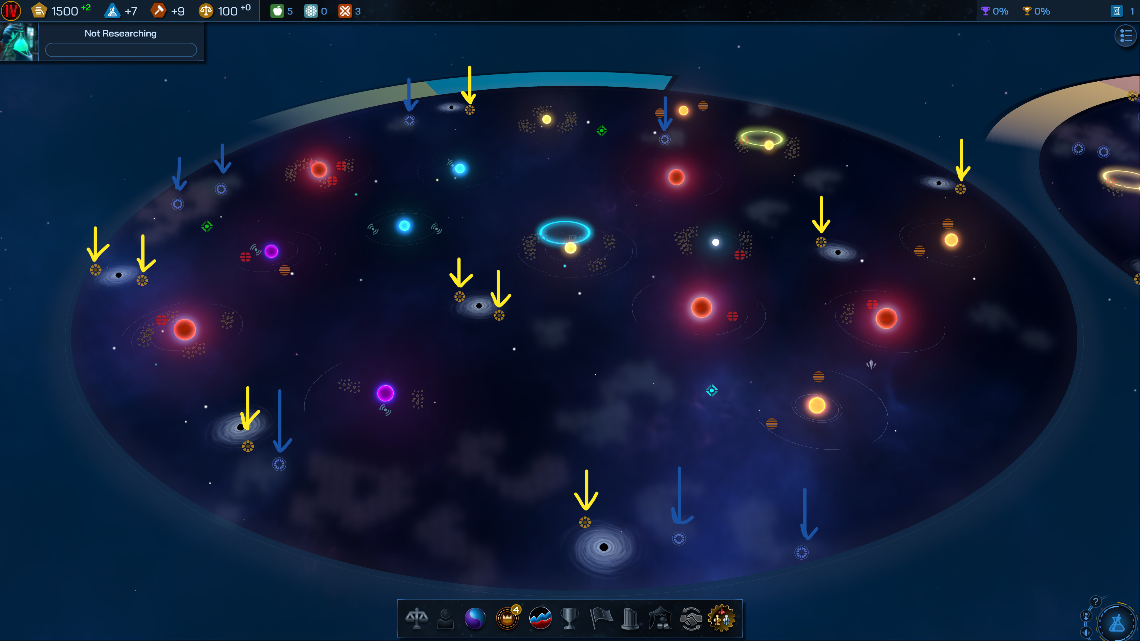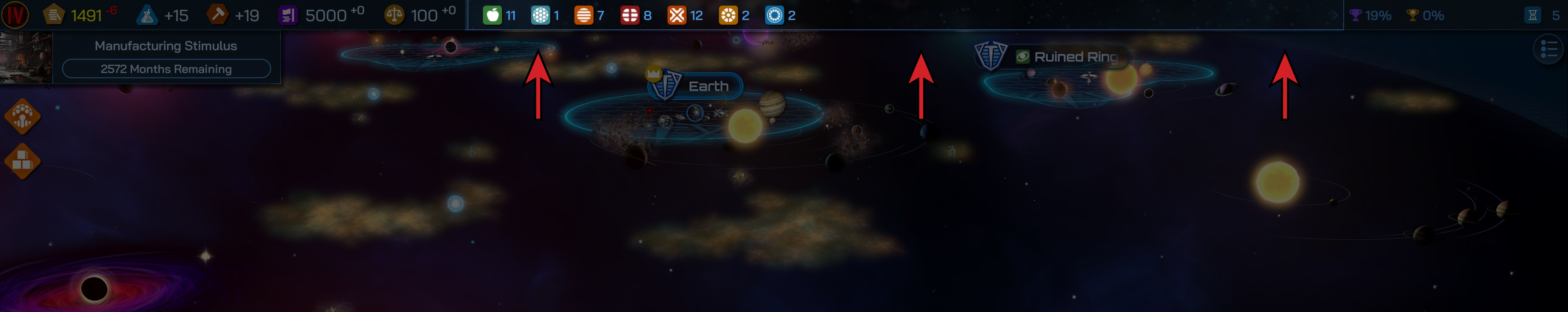 There are over a dozen other Resources that you may collect or encounter during play. Most of these Resources can be found on random planets and harvested via specific Improvements or Orbitals. Many of these Resources can be purchased on occasion from the Bazaar, earned through Events, or traded for with other civilizations.