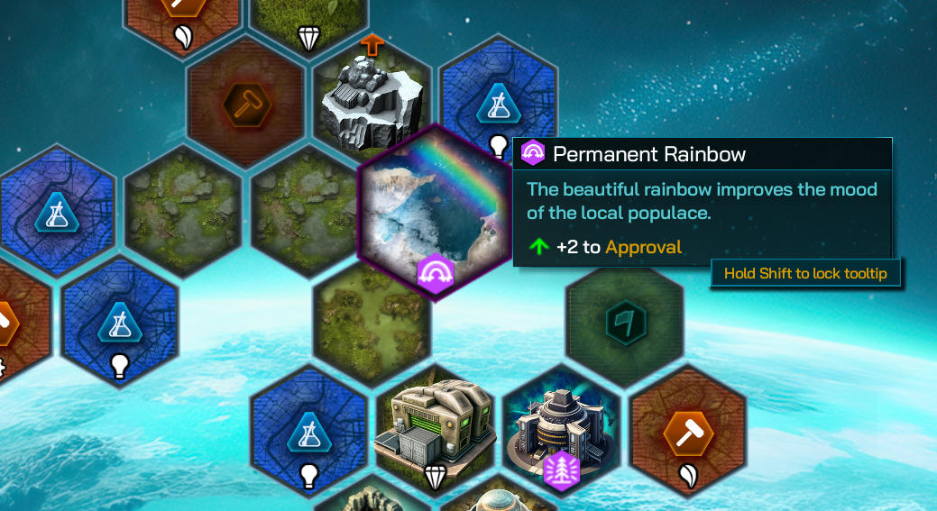 Core Worlds with natural Approval boosting tiles to help offset the Approval penalty for overcrowding, like this Permanent Rainbow, can make great planets for this strategy.