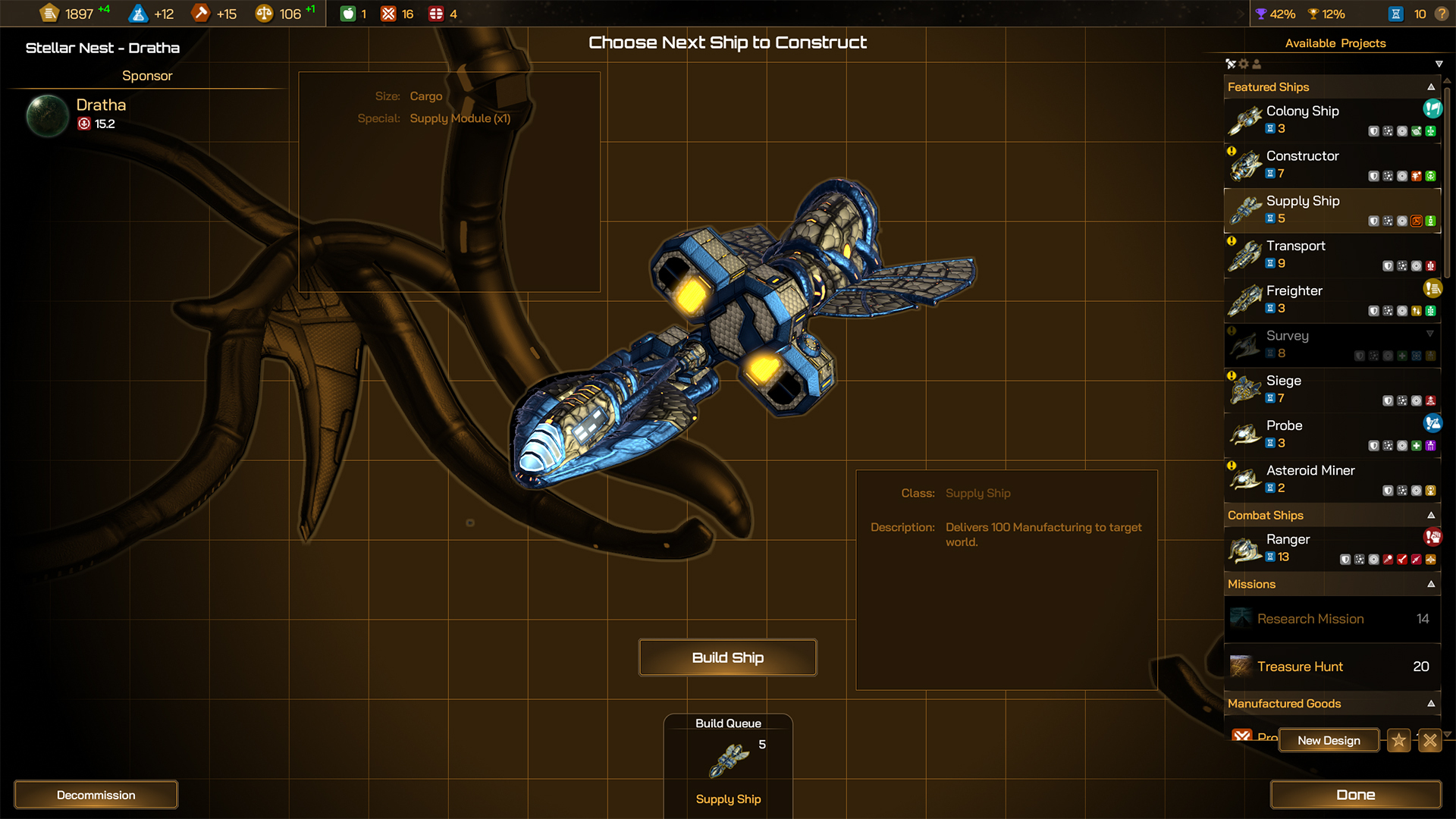 Once your Population begins to max out and your people start complaining about overcrowding, you can use the Citizen Transports to send excess Citizens to your newer worlds (including that heavily Polluted Manufacturing world that’s building your Supply Ships and likely has little population growth of its own). Develop this baby-making planet with Cultural, Approval and Wealth generating Districts and Improvements too, to make use of those Citizens who’re otherwise sat their breeding.