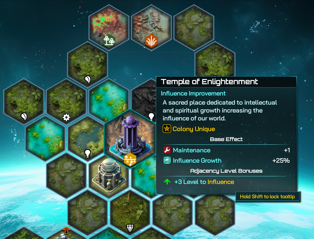 The Altarians are one of the most influential and cultured of all the galactic civilizations in the game, and are utterly oppressive when it comes to Culture production. The Temple of Enlightenment powerhouses this playstyle and will gear Altaria up with a +25% Influence Growth and +3 Level to Influence Adjacency Level Bonus too. After some much needed balancing, Influence now requires the player to build for that type of playstyle a lot more, and this gives the Altarians much of their bite back when it comes to pushing for a Influence victory.