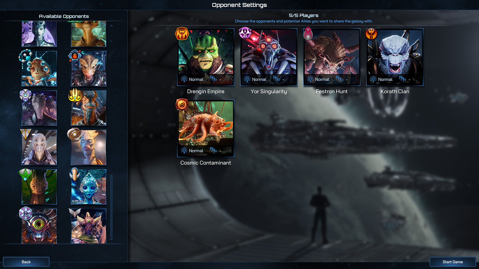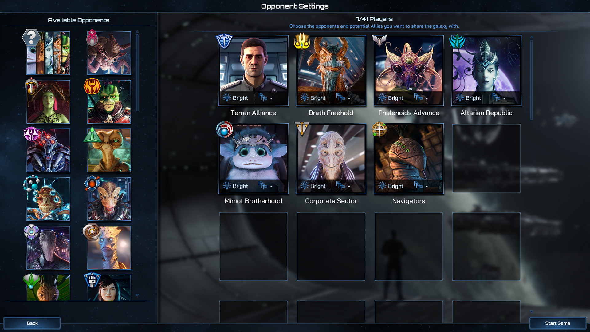 This is a bit of a cliched selection of civilizations that tick the “dangerous AI” box, but I’m sure you get the idea: we want a motley crew of disagreeable, xenophobic bullies who’re going to be starving for resources and habitable worlds to expand out into, and have absolutely no excuse not to go to war when someone else has what they want.