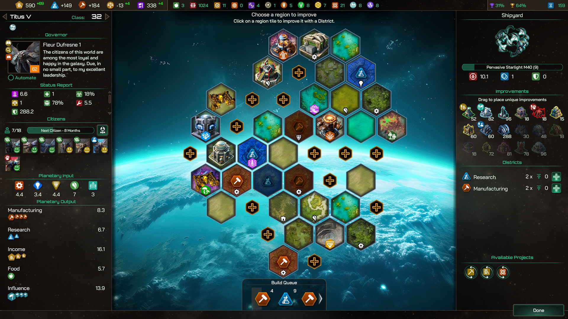 Next, let’s take a look at a more sandbox-oriented approach to playing a 4X. Here, we want lots of space to expand so we can focus on building a well-oiled economic machine, with lots of Core World and Colony management for those players who love to manage huge empires.