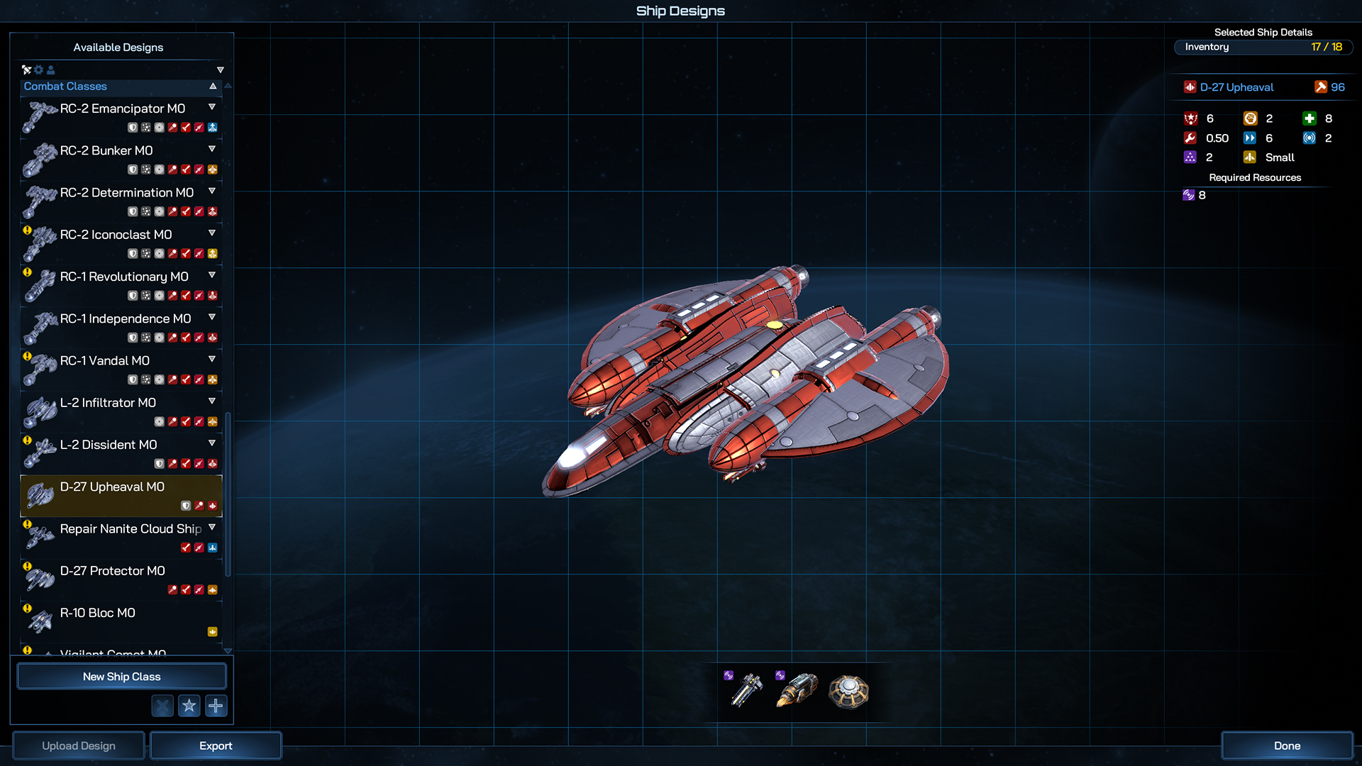 Finally, here’s one of the Tiny hull sizes, this one is a Bomber but you can set it to be a Fighter too.
