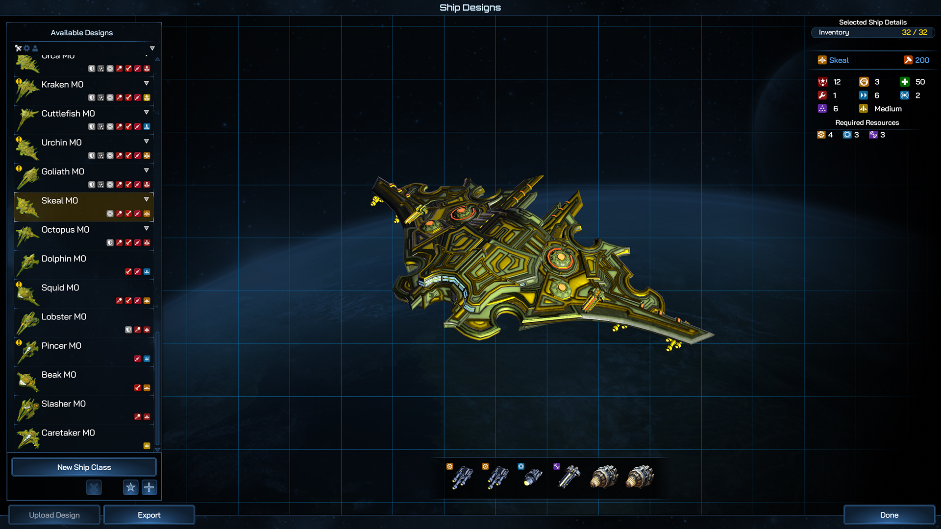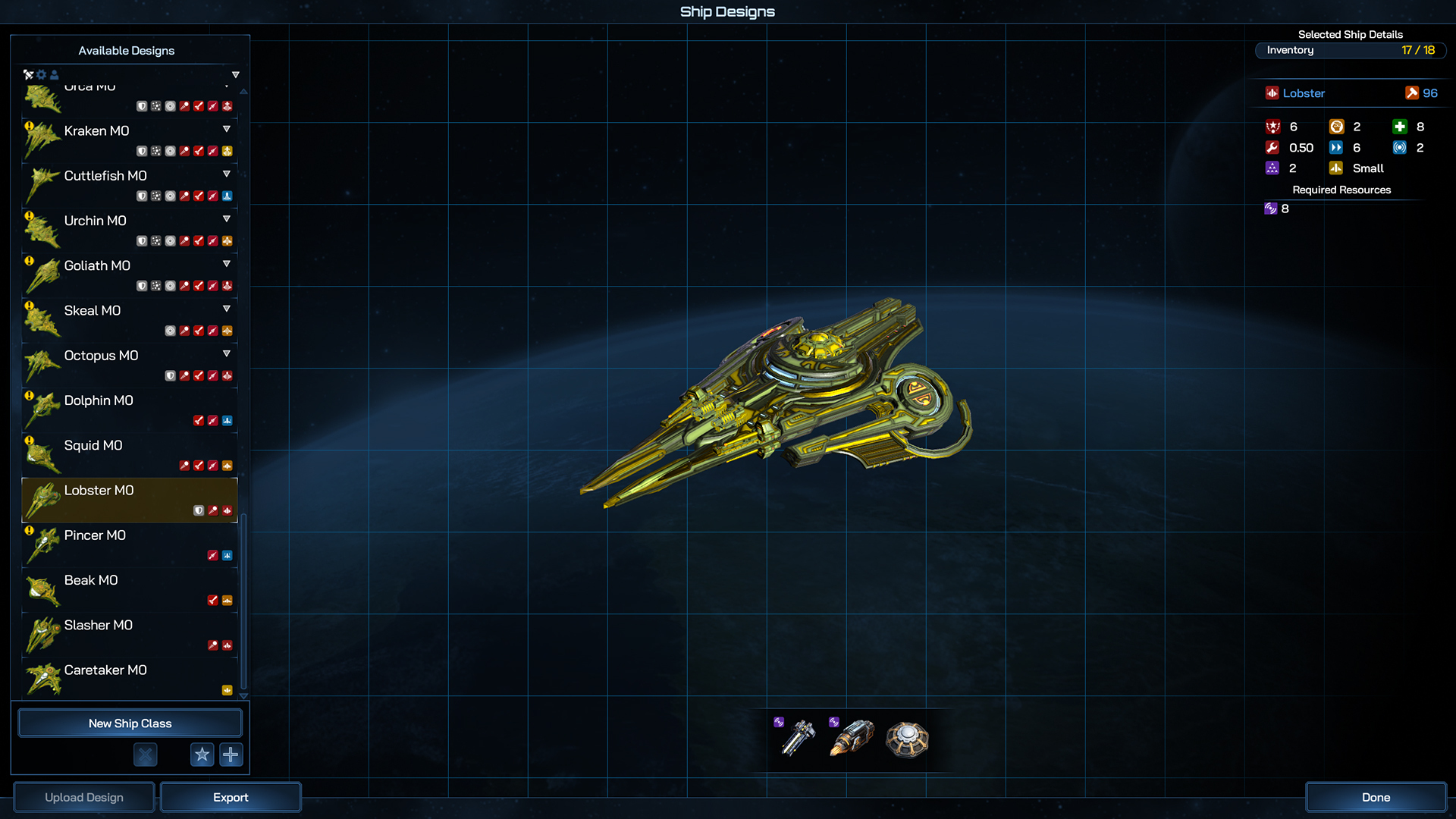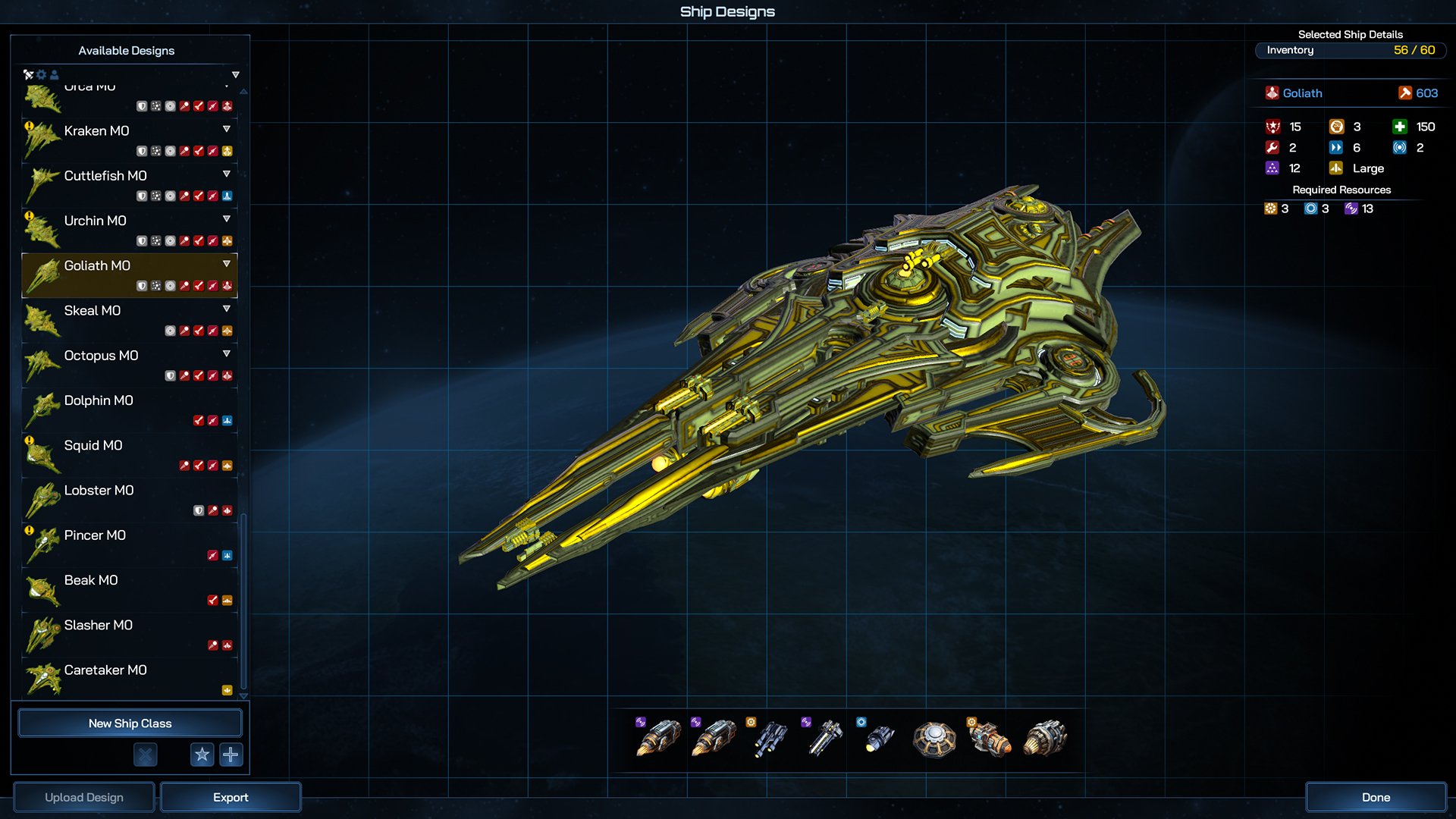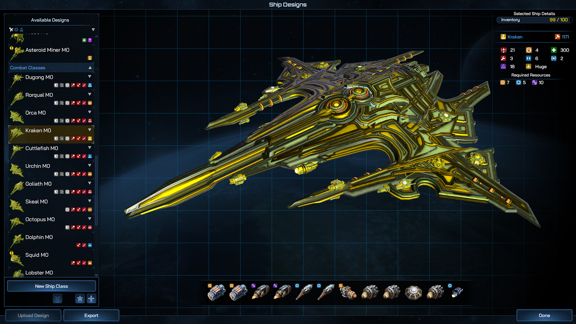 Even more so than the Battleship, the Dreadnaught can field so many components that your only really limited by your imagination when it comes to designing and planning its role in your fleet. Whether you go all in on firepower, tank damage from other large ships or field a whole host of fleet boosting abilities, the Dreadnaught is the centerpiece of your navy.