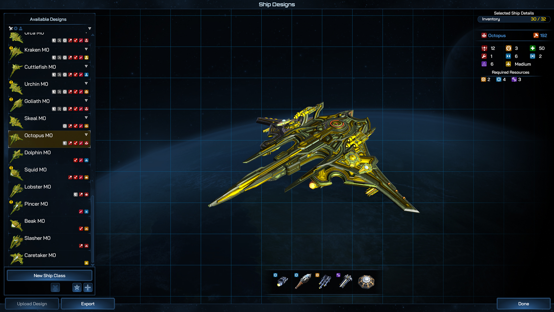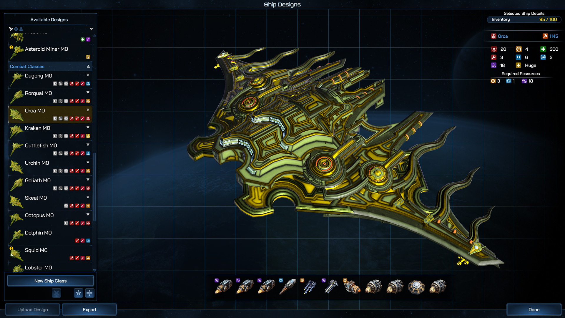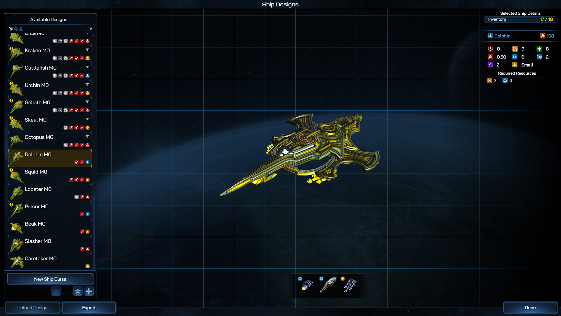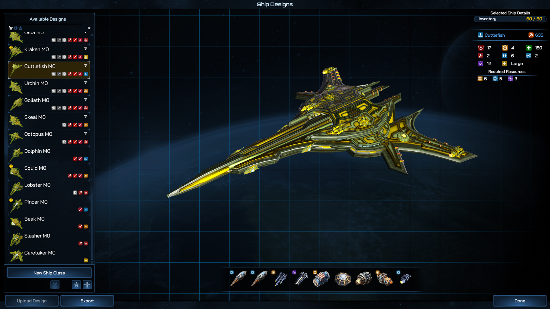 Even more so than the Battleship, the Dreadnaught can field so many components that your only really limited by your imagination when it comes to designing and planning its role in your fleet. Whether you go all in on firepower, tank damage from other large ships or field a whole host of fleet boosting abilities, the Dreadnaught is the centerpiece of your navy.