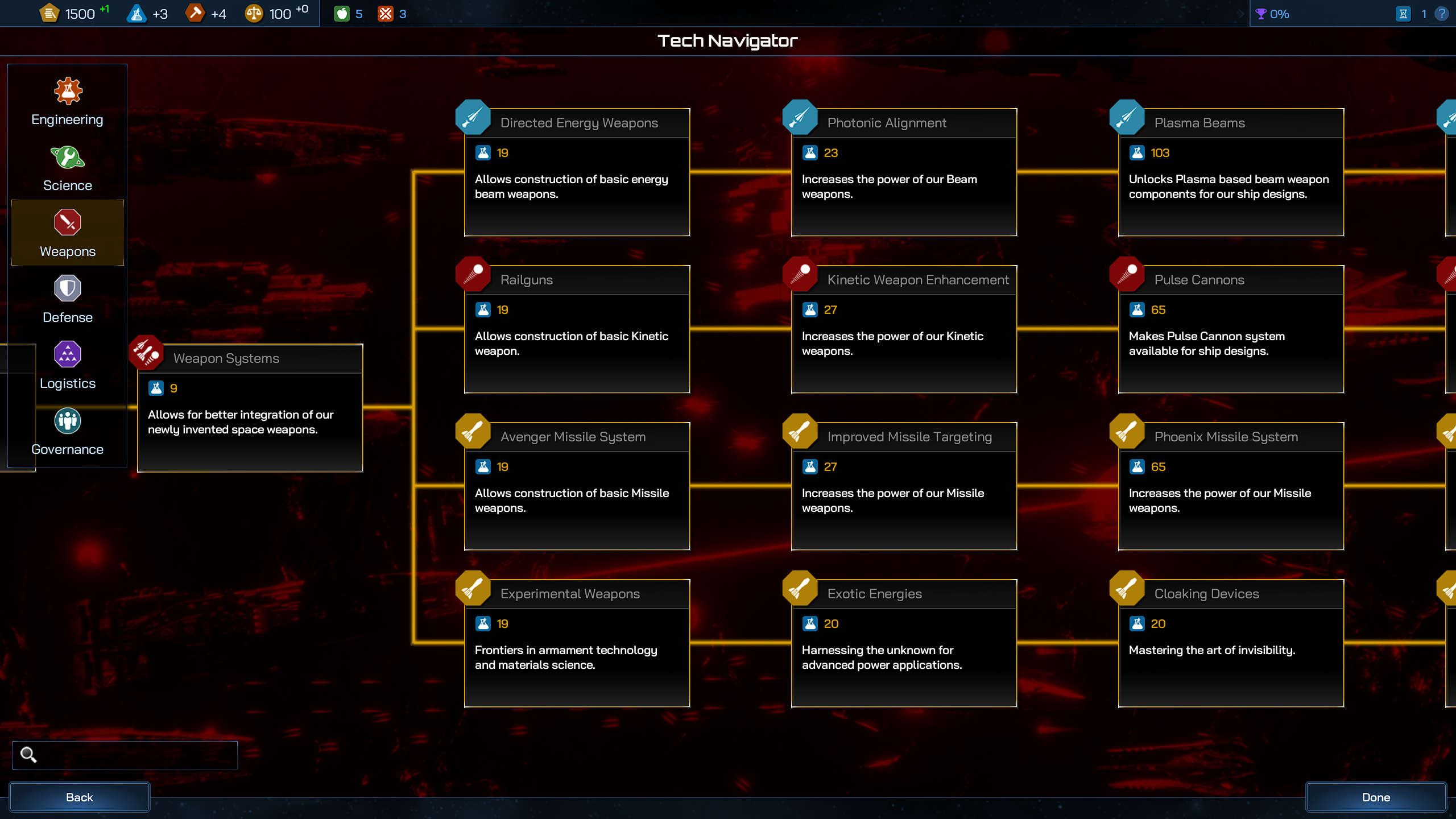 We have greatly expanded the tech tree for both Warlords users who get new technologies like Cloaking Devices and Biological Targeting as well as 2.5 users looking for new ship components instead of merely a stat bump.