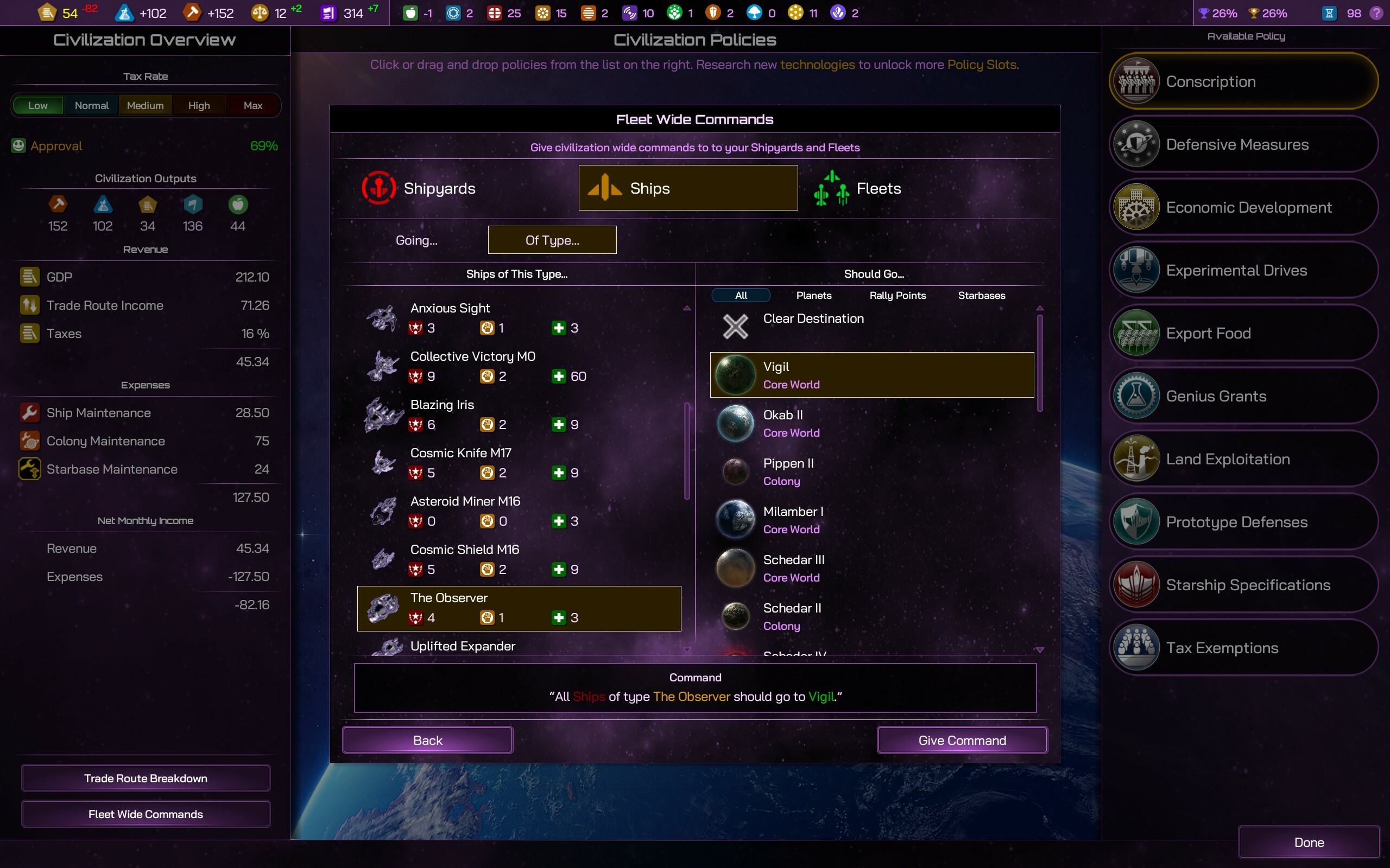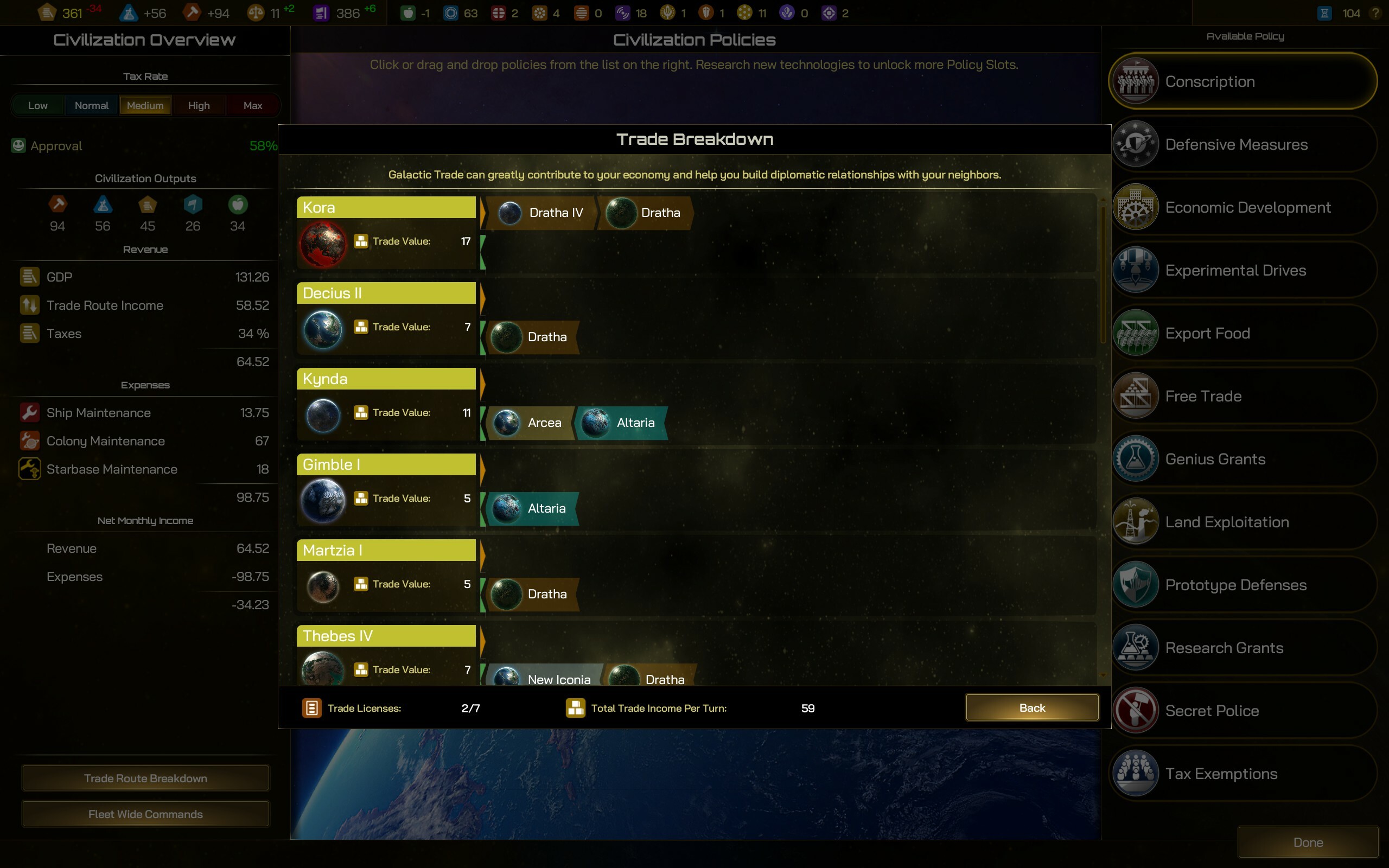 The trade breakdown screen now allows players to clearly understand at a glance which planets are trading with your civilization and which of your planets is being traded with.