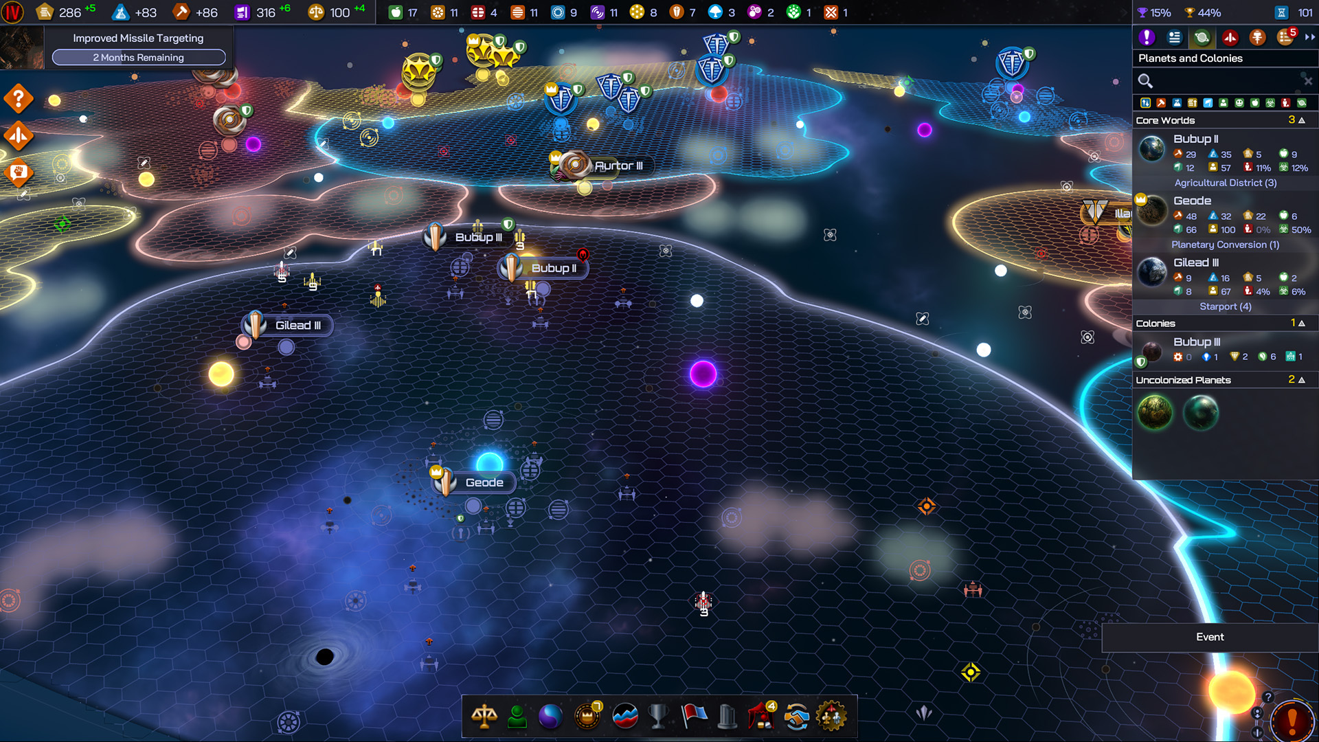 Serenity targets one of your own worlds, with the options to dramatically improve Growth, Approval or Influence and Tourism, depending on your needs at that time. This flexibility can cover a lot of potential issues you’ll come up with in the early game, with the last option to boost Influence generation and Tourism being particularly effective in the late game once you’re territory is a lot larger.