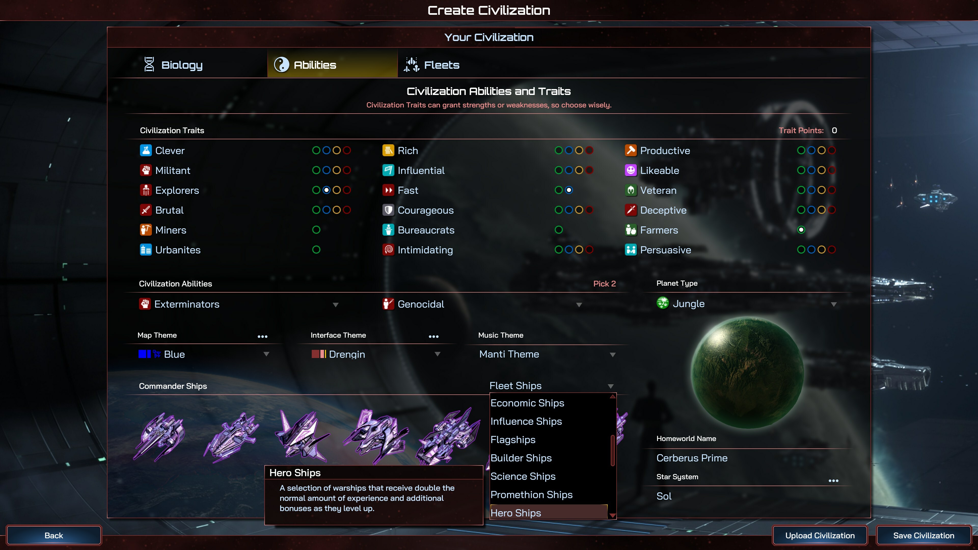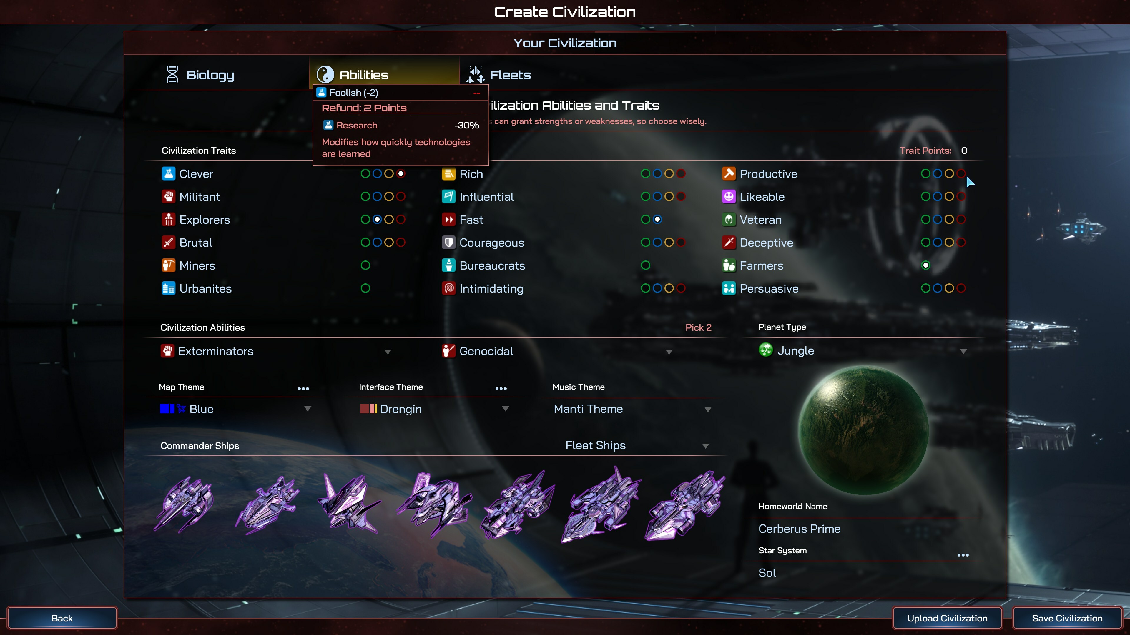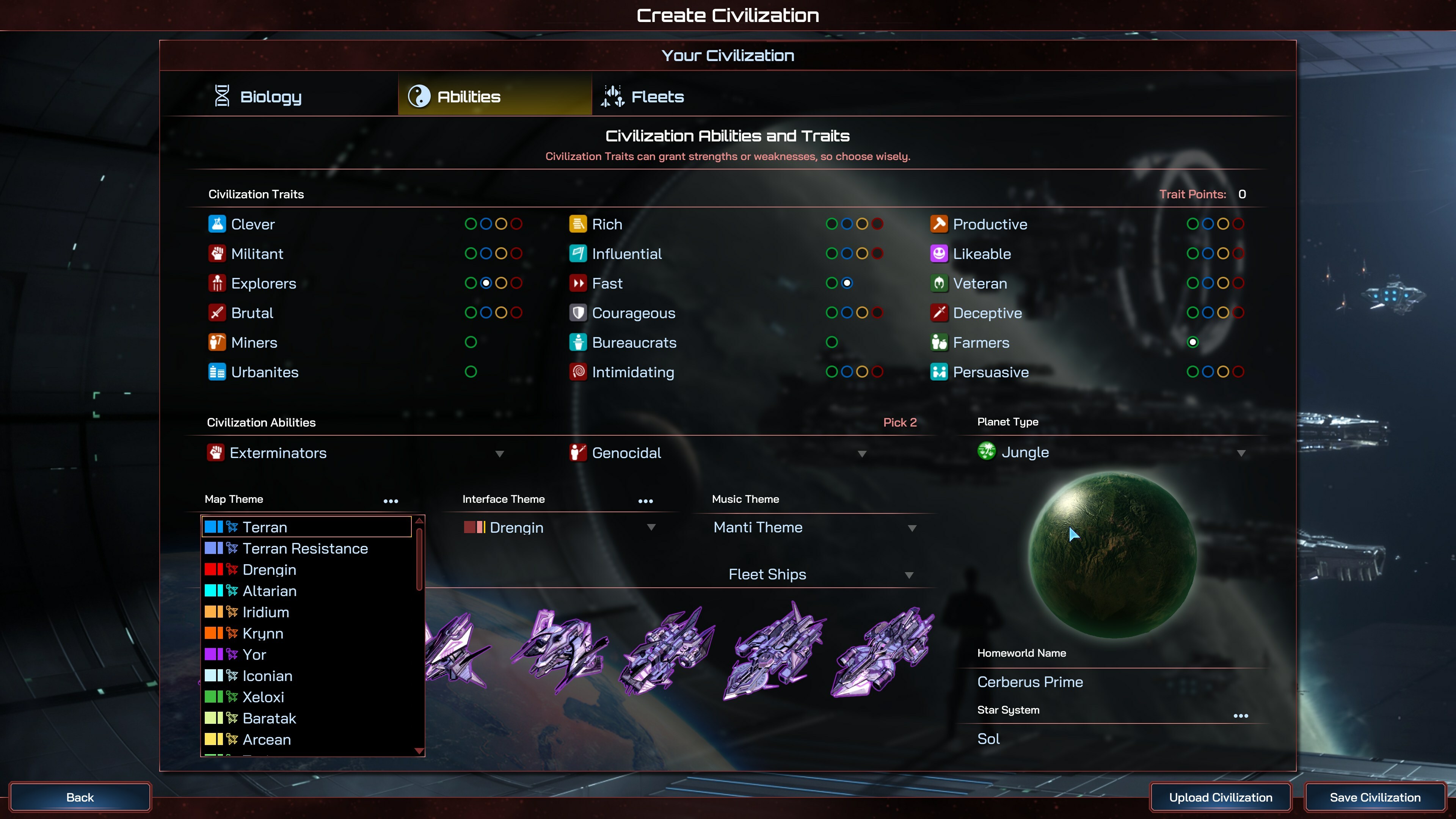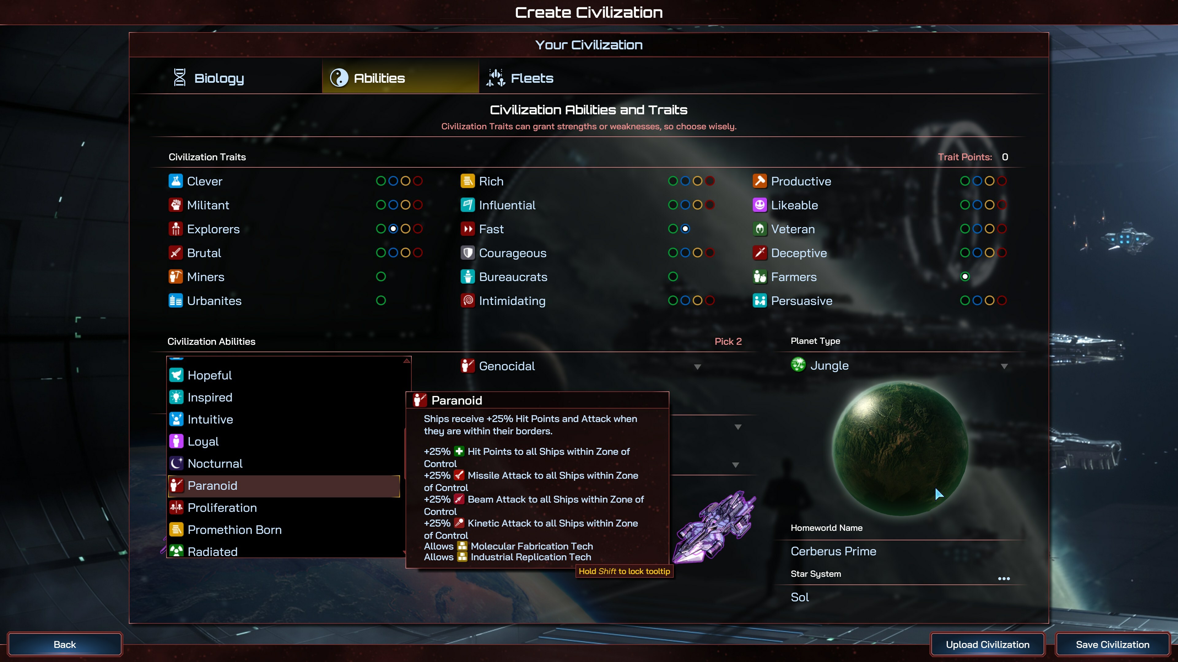 For inspiration, consider existing civilizations like the Corporate Sector. Focused on economics and trade, they maximize the Rich Trait and possess the Traders and Wealthy Abilities, granting bonus trade routes, a wealth of credits, and boosts to gross income and ship range.