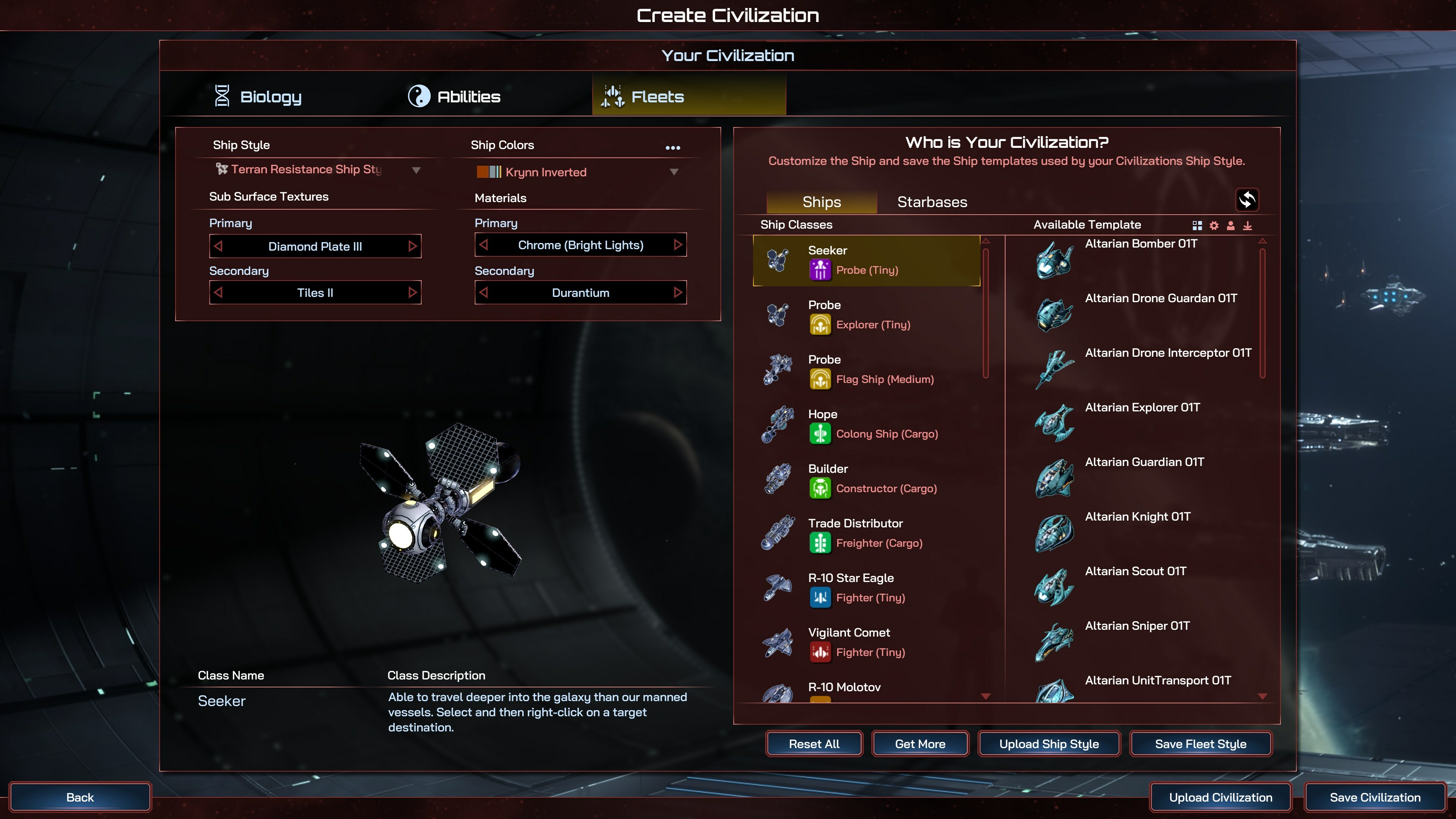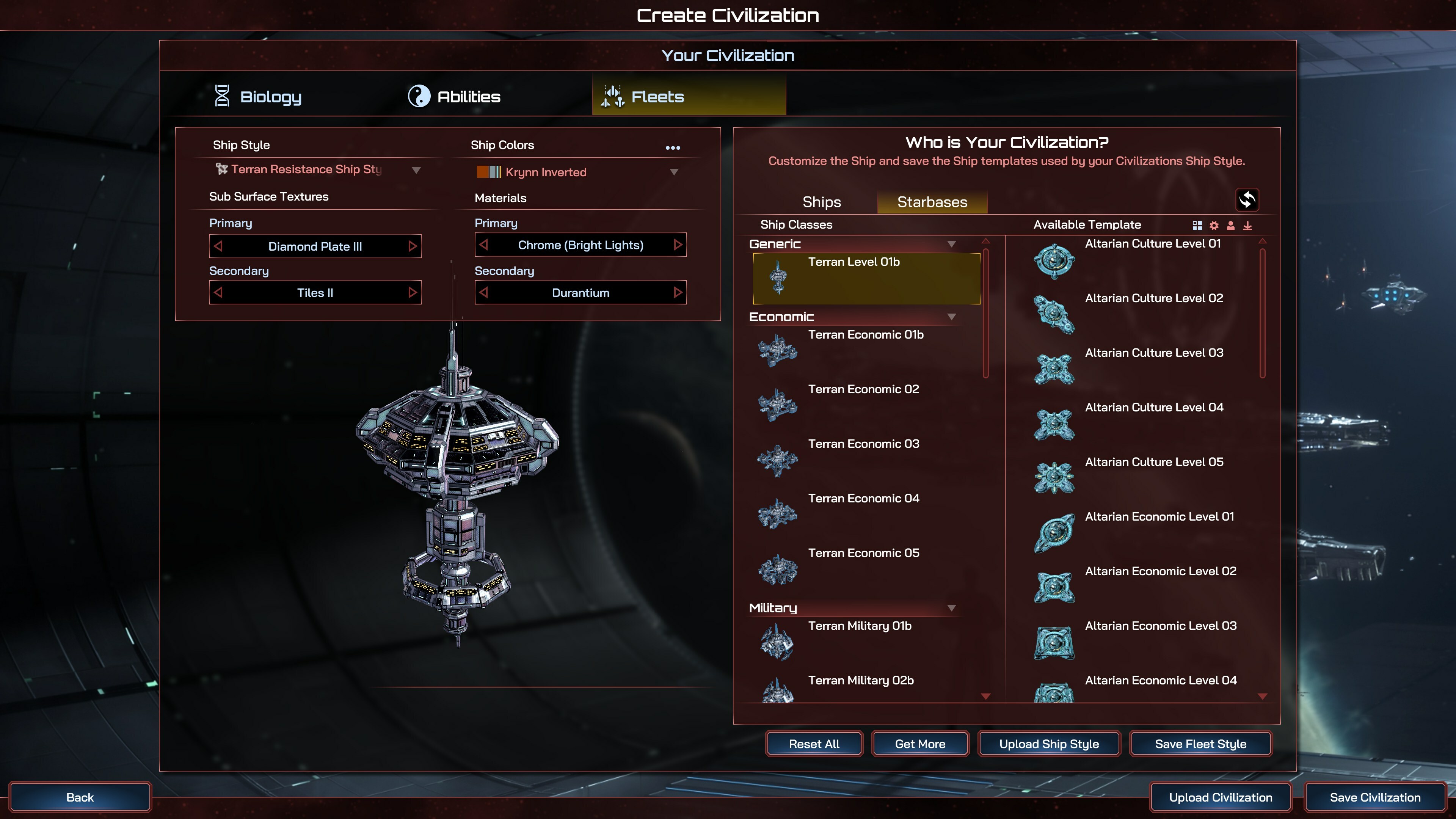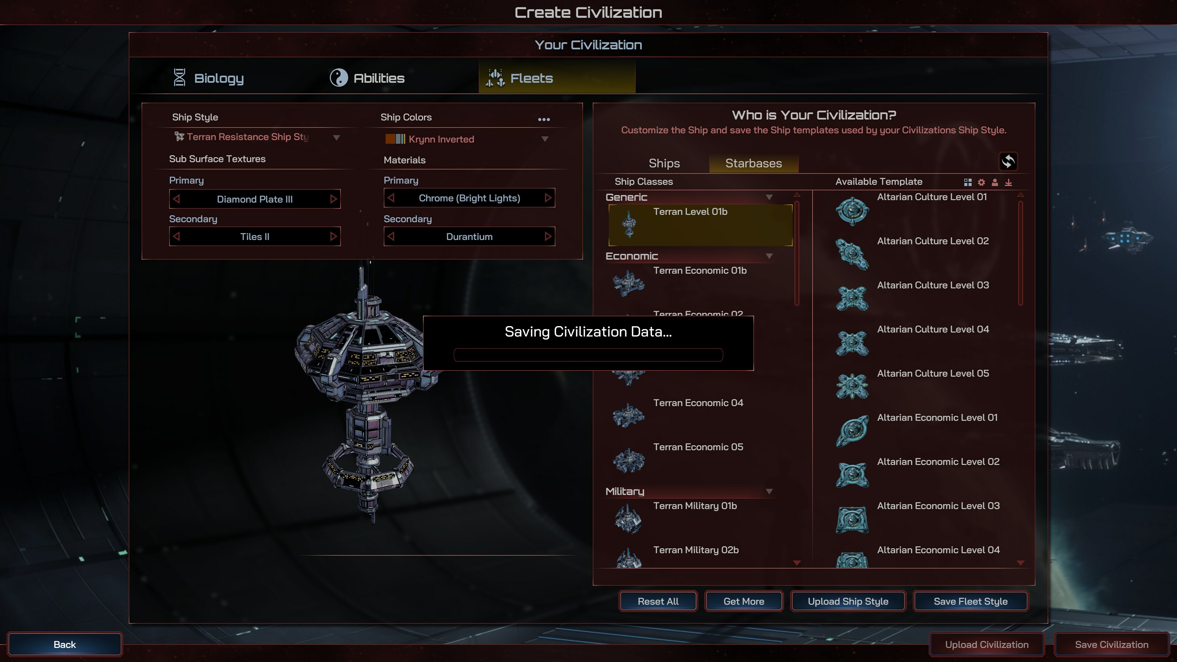 Before diving into gameplay, consider sharing your creation with the community by uploading your civilization to the Steam Workshop. Our community is full of talented civilization and ship designers whose creations may offer the perfect additions to your next game.