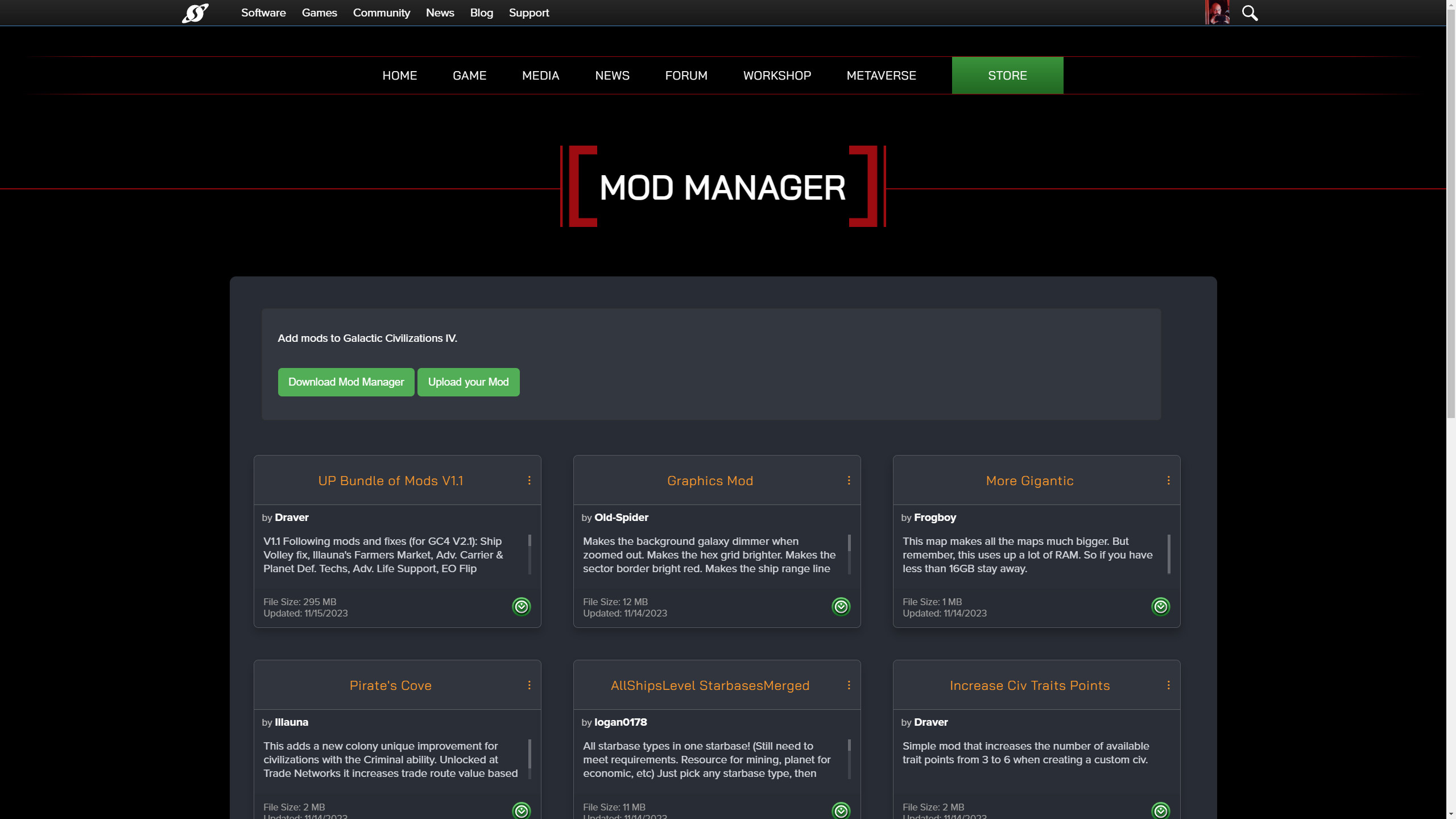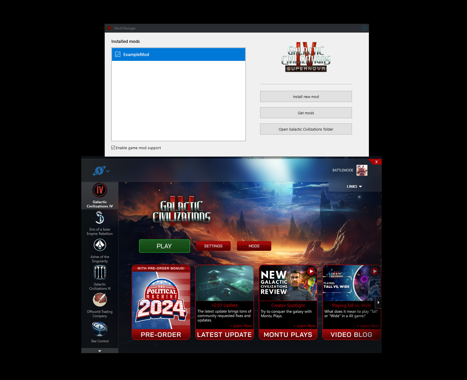 Clicking on the “Get mods” button will take you to the GalCiv4 website where modders can upload their creations, and you can download them too.