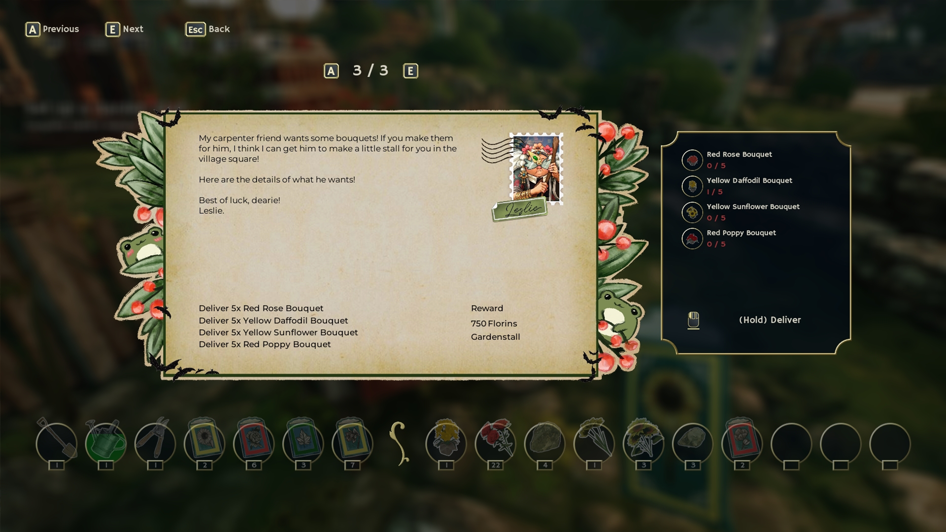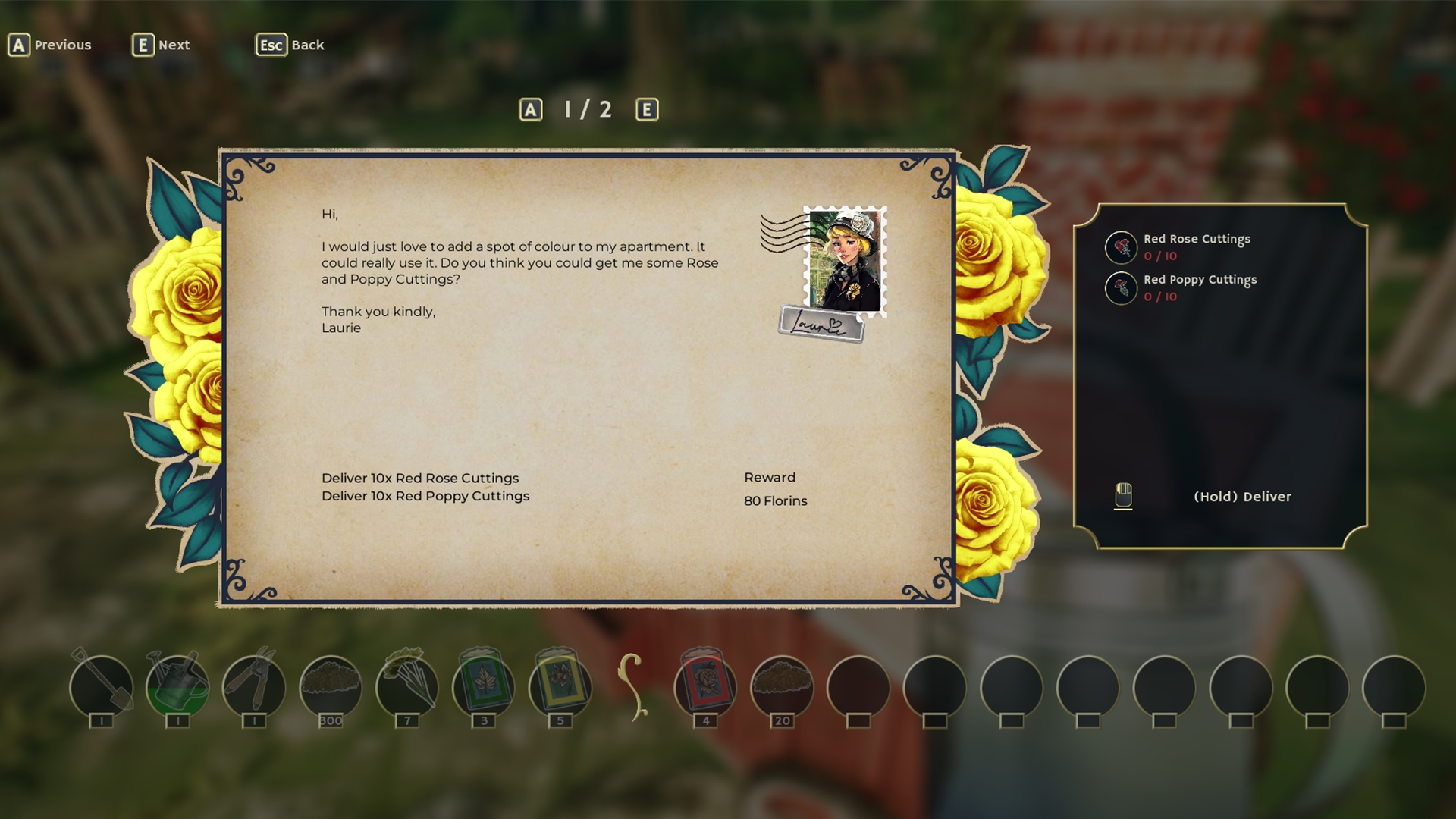 As you can see, requests can take several forms: either a character speaks to you directly, or you receive a postcard in your mailbox (the cards are ✨wonderfuuuuuuul ✨).