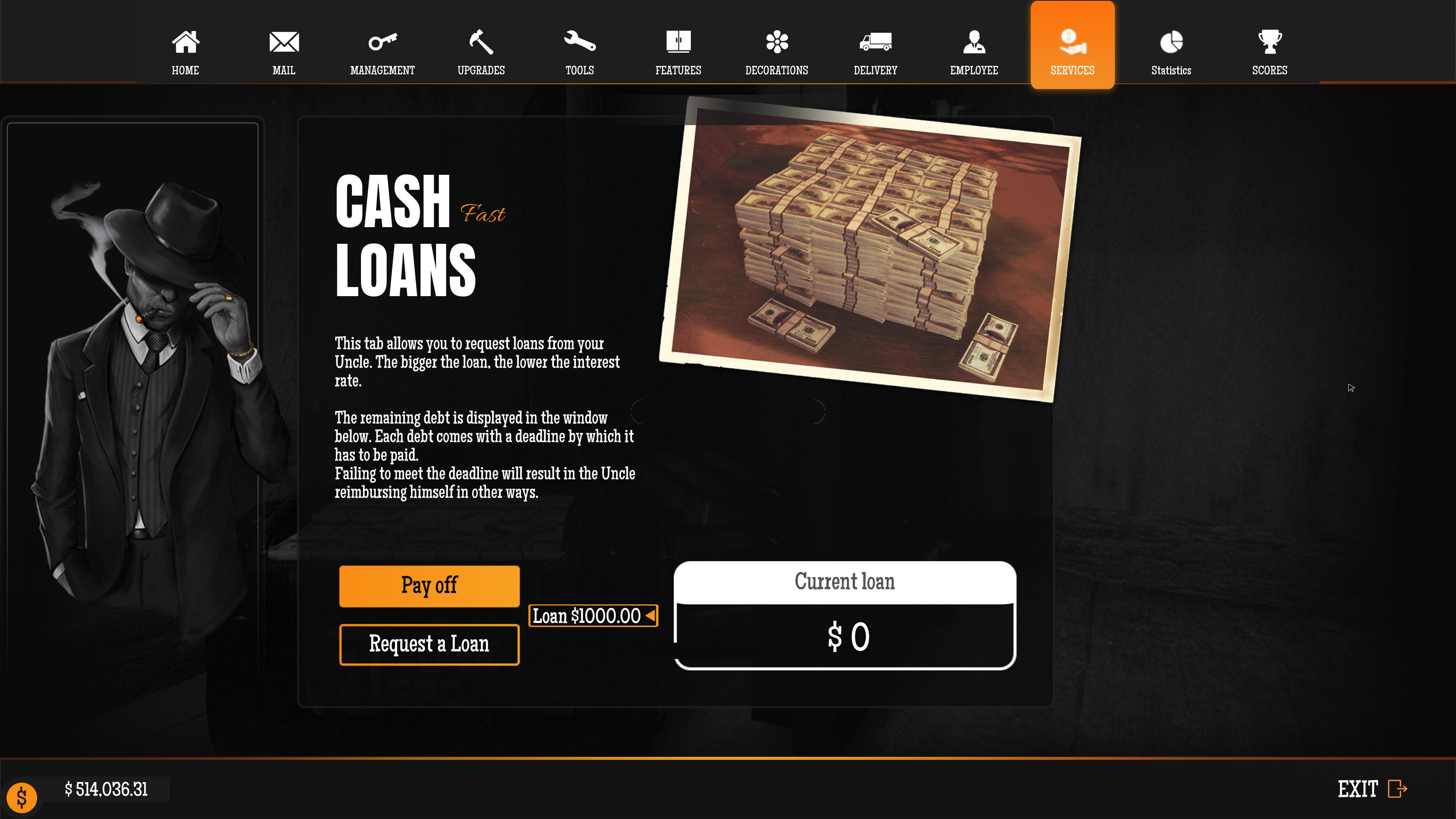 The initial design of the loan system remains unchanged. In the unfortunate event of non-repayment, the biker will make an appearance to collect the player's movable properties with a value similar to the outstanding loan. In other words - think twice before you decide to get yourself a loan – If I were you, I wouldn’t like to meet the biker face to face while taking my stuff away.
