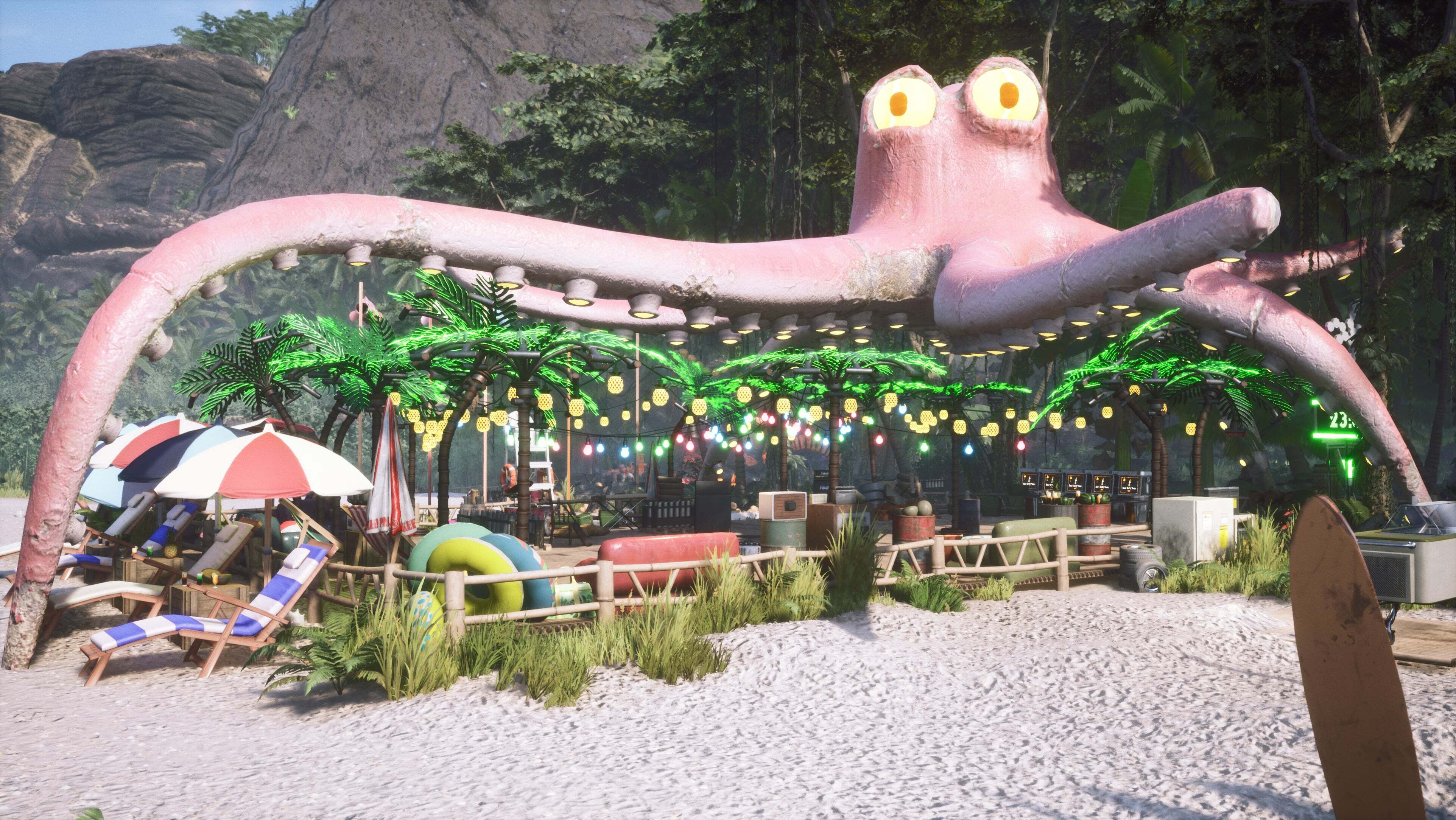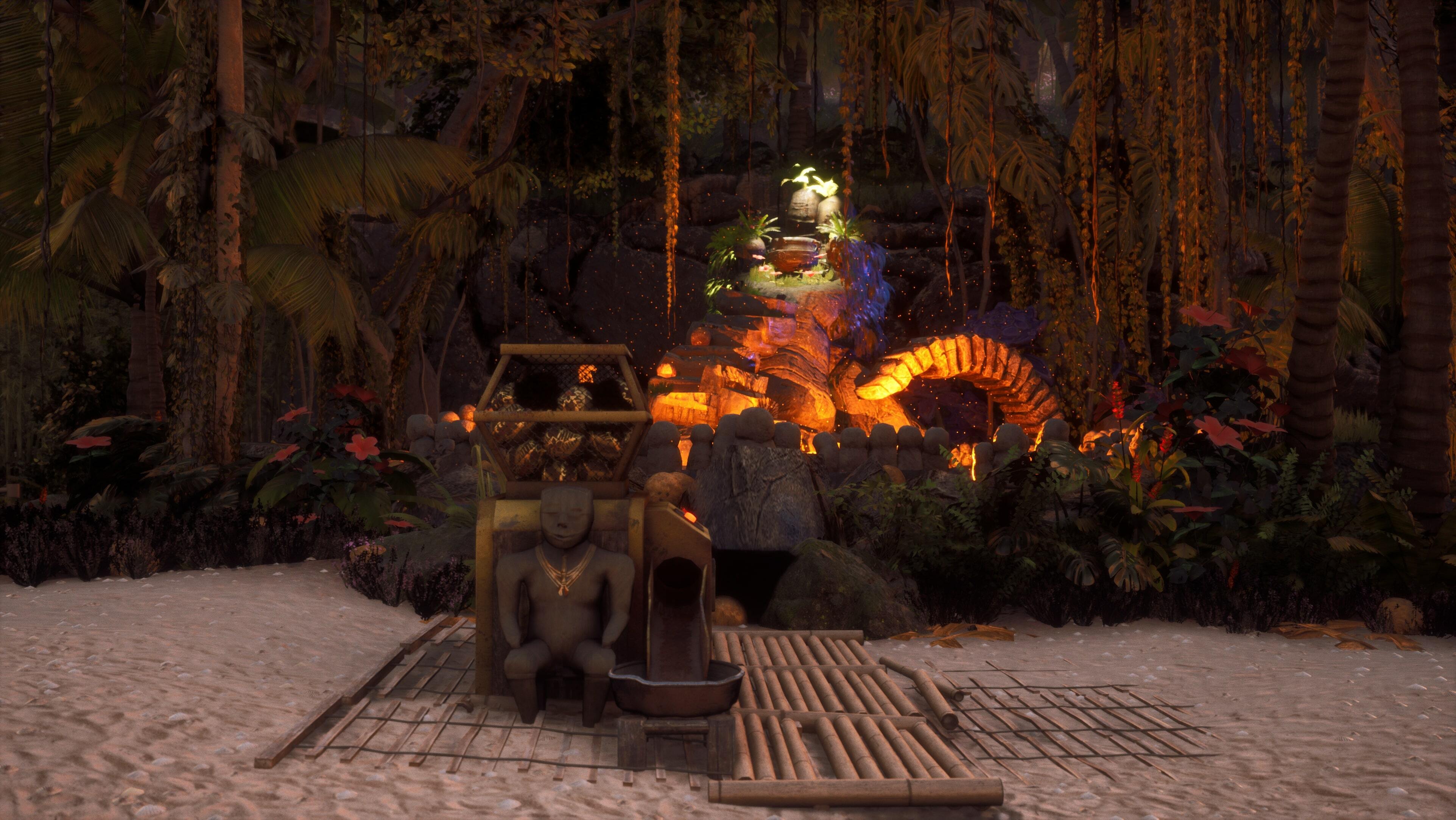 For instance, you can collect special coconuts and sacrifice them in the altar which will speed up the recovery process. The further the distance, the better score you will get. By the way – the altar looks amazing, don’t you think? Looks good enough to throw a party - and a good song and dance at the party spot will help keep the god at bay. Finally, every time you make sure a client is happy with the services of your station, the god may nod his head in approval, calming down just a little bit.