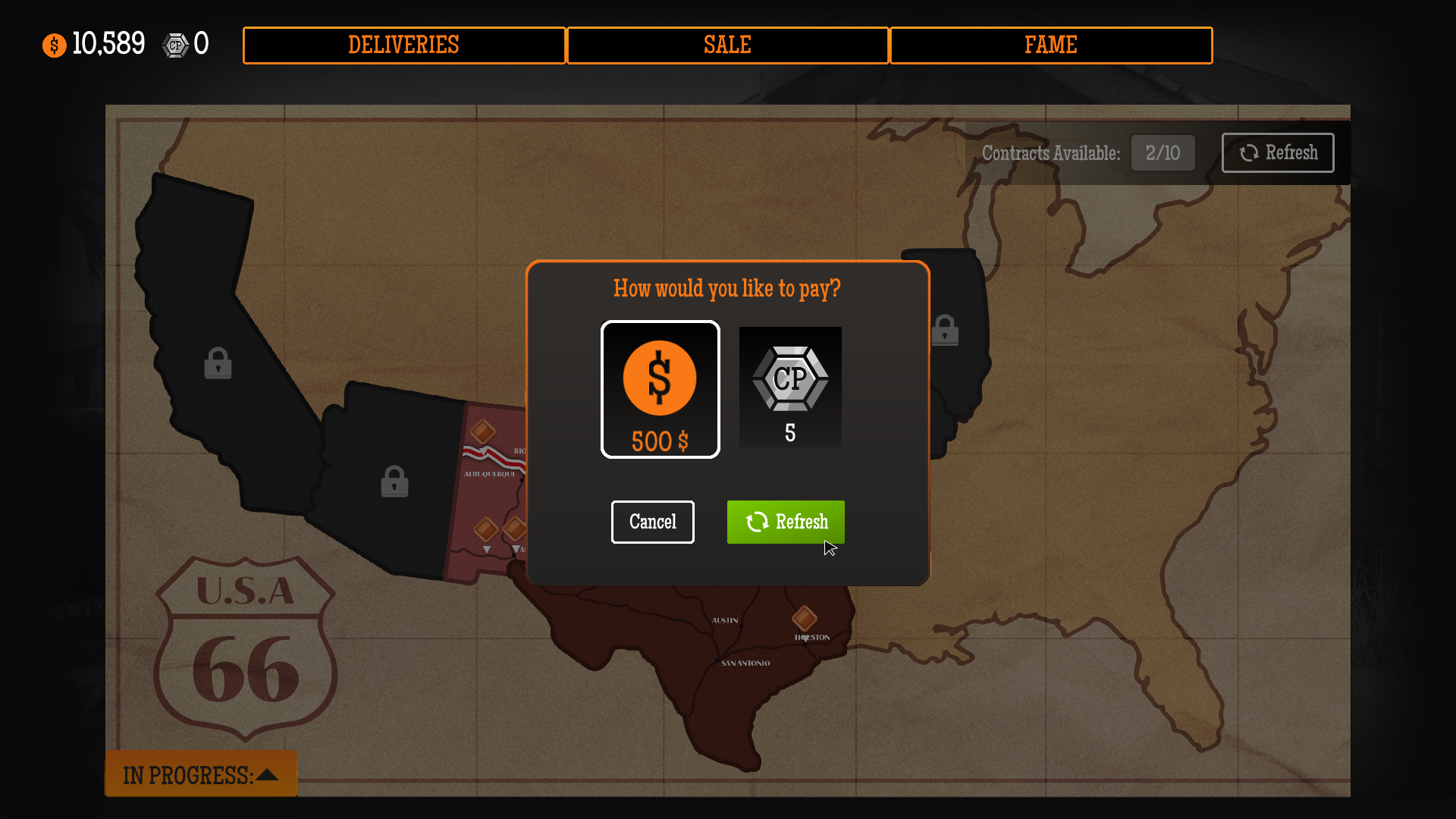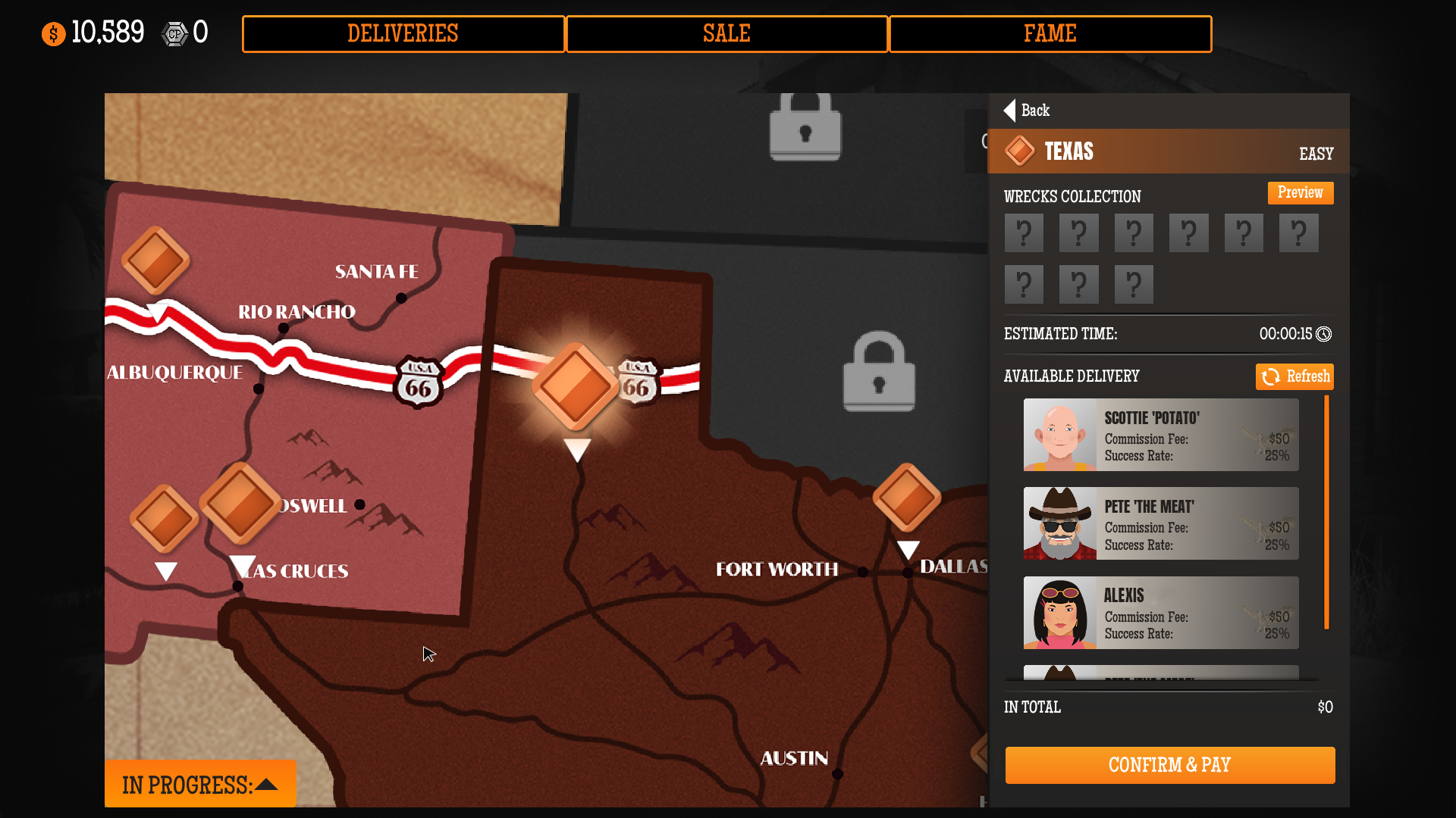 Board serves as your command center and helps you get around the junkyard with ease. Here you can check and access all of the necessary information which includes map (crucial when choosing the next wreck delivery), contracts (will talk about it later on), sale, and fame. Think of it as the heart of your business. It’s your number one go-to place when you need to check whether you’re going in the right direction or not.