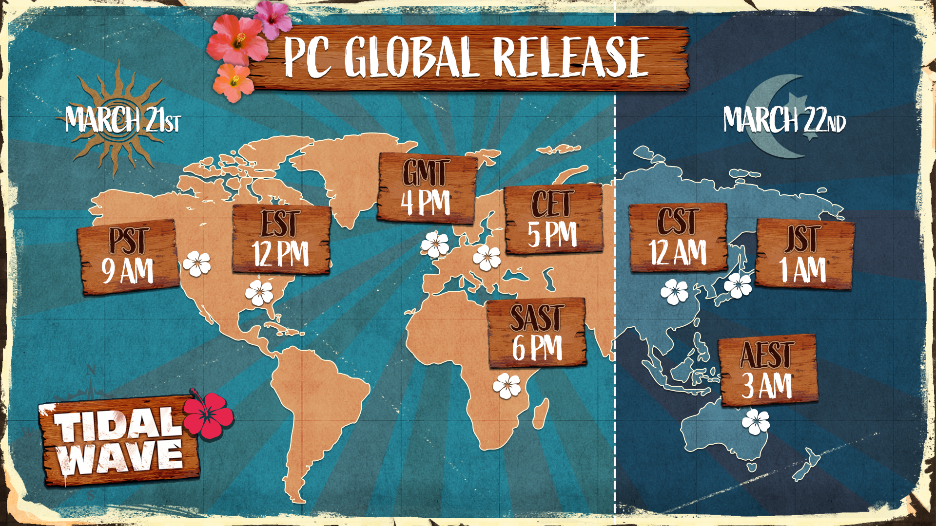 Most of you know the date, but what about the exact hour of the release? No worries, we've got you covered, folks! Check this handy graphic below to see when exactly Tidal Wave DLC releases in your region. And yes – I'm so sorry for those of you who have to wait up until 2 am on March 22nd ????