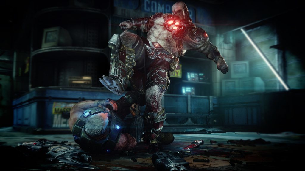 Every wave will see Locust enemies attacking you, each with unique stats and AI. You may even encounter Locust enemies foraging for weapons across the map to use against you.
