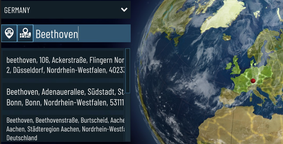 - [b]Adress Search[/b]: You can now search for streets, map starts, and centers based on an exact position. Switch between postal/city search and online street search from the globe.