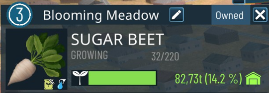 - Weed pressure is now displayed in the info box. Repeatedly planting the same crop type in the same field increases weed growth as a penalty.
