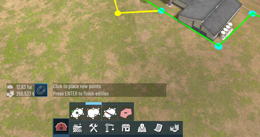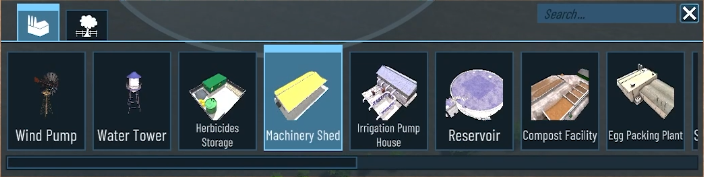 - [b]Machinery Shed[/b] - Reduces machine operation costs for connected fields.
