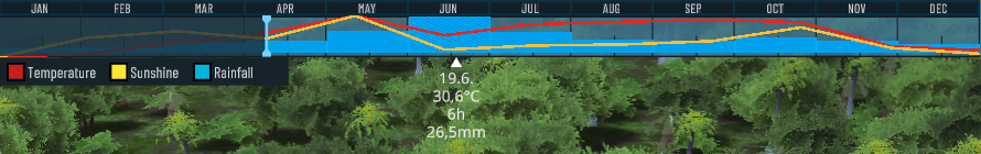 Now you can more easily spot the sunshine, temperature and rainfall differences between the different months. This makes planning your crops more intuitive. If you want to get rid of them, you can simply toggle them off.