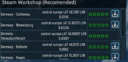 The maps you create can be uploaded to the steam workshop via the savegame map editor screen. (There is a cloud button somewhere) - If you set it public the map will show on the globe in the according region so other players can download it and play it - Those recommended maps are ordered by ratings
