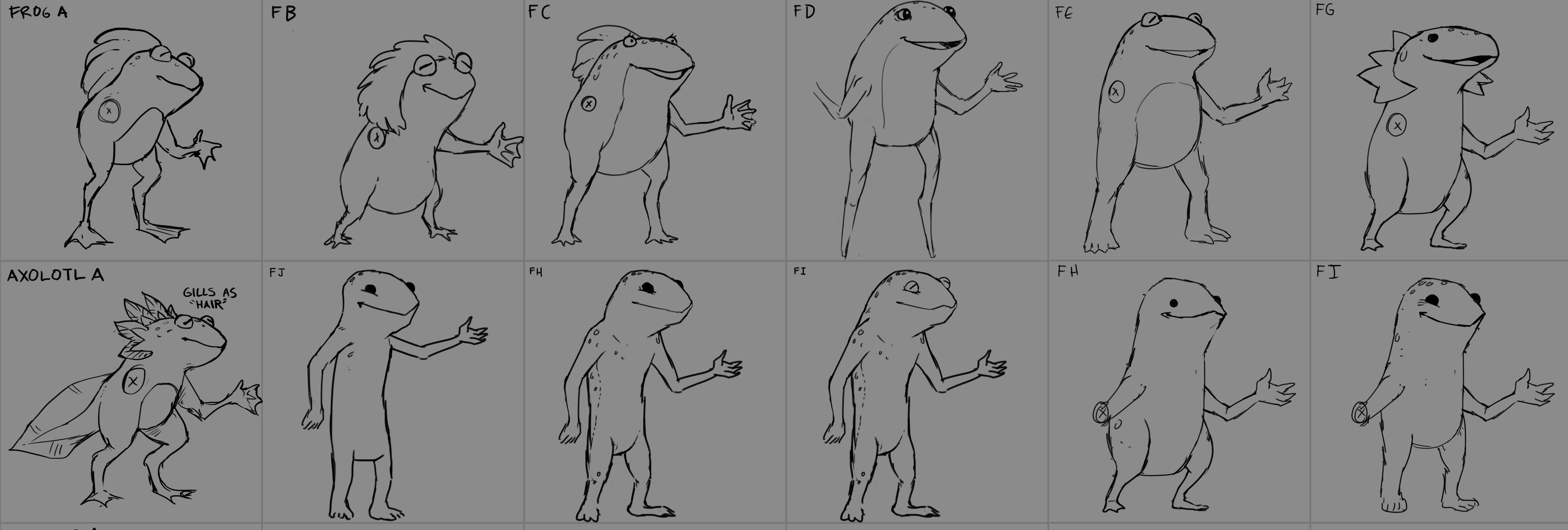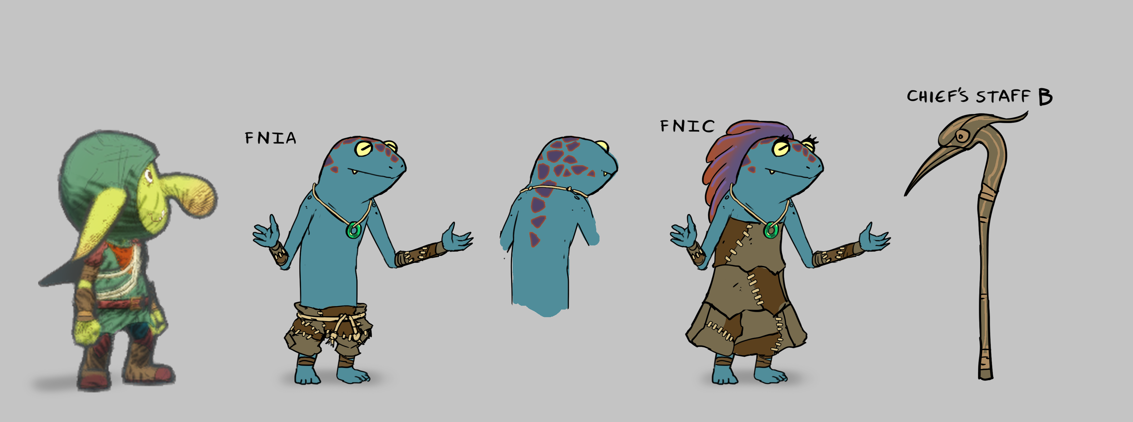 During the design process, we first created several versions of the Kobolds with features from real-life reptilian creatures such as frogs, axolotls, and salamanders to create the base look that we want for the Kobolds. We further simplified the design but stylized it to create a similar quirky look as the goblins.