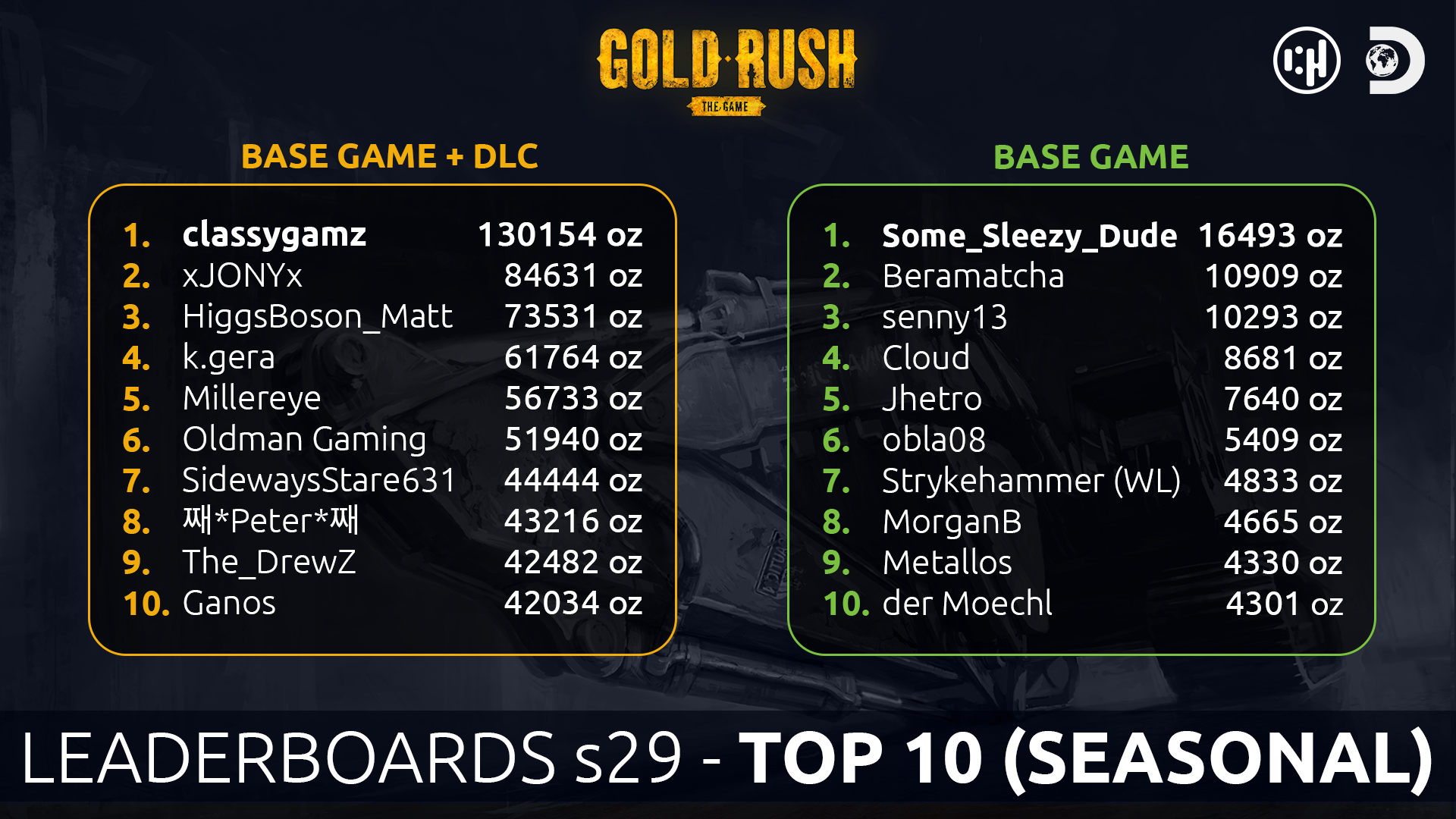 Hello Miners! ⛏ Here are the results for Season 29. Congratulations to all of the winners! ???????? Get some rest before we announce next season, you've earned it :)
