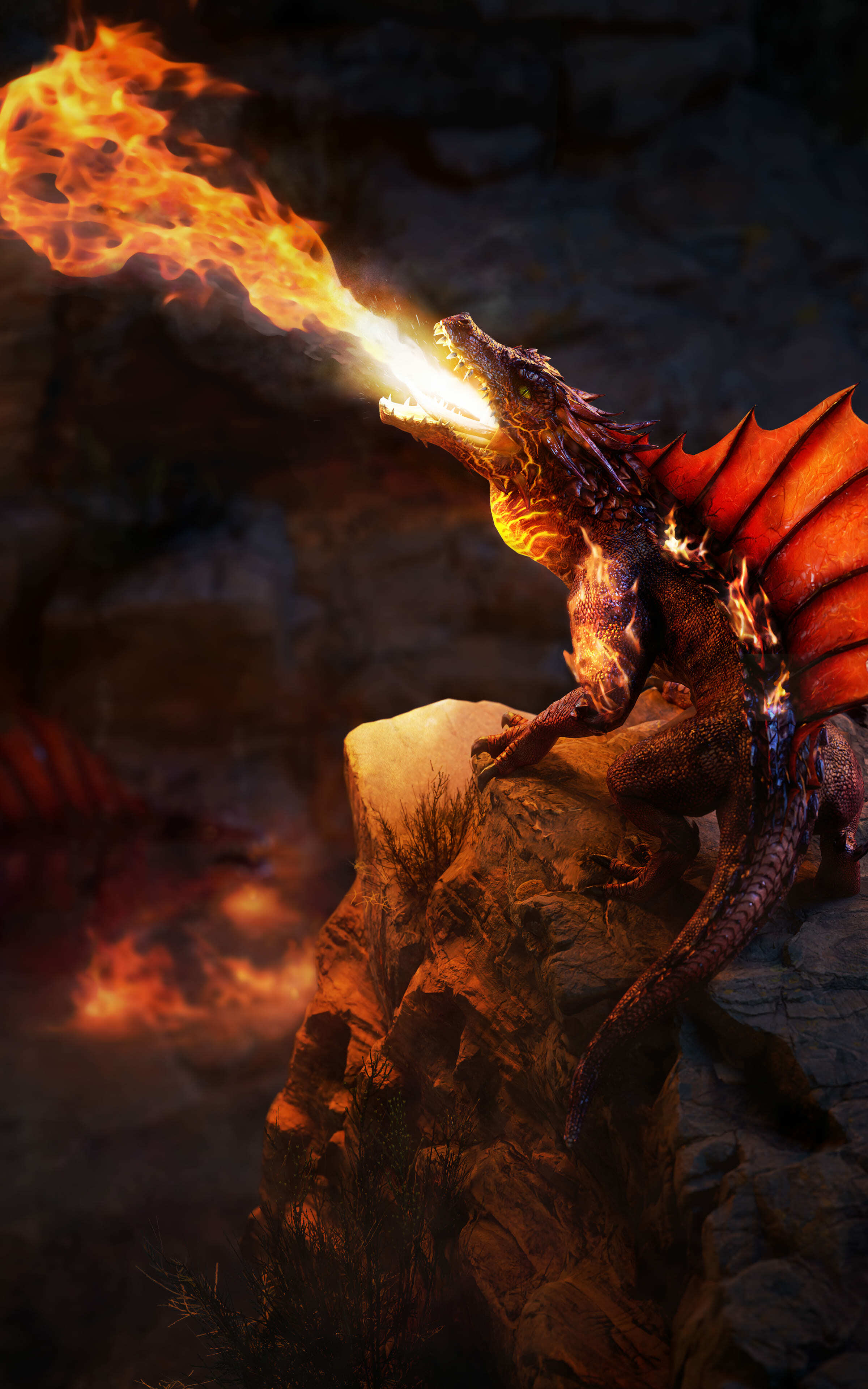 As you explore the sandy shores of Myrtana, watch out! Here, besides the usual lizards, you might run into fire lizards as well! Their crests glow with a red-bloody color, and their mouths spew terrible flames! These creatures are really risky! Even orcs avoid them, and not for no reason! After all, one of the ingredients for Ulu-Mulu is their tongue!