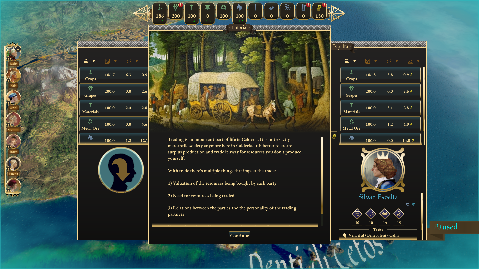 [b]Family traits[/b]: With the family traits comes their inheritance. There is a small chance to receive traits from the parents at birth. They are meant to strengthen the family identity and influence their behavior based on Traditions, choices and event outcomes. [b]Traditions[/b]: New traditions have been implemented and tested, including the « Calderian Mysteries » of the Schemers path (which can influence Viceroy's relations against the House of any Duke or Count) and the « Celebrating Life » of the Peacemakers path (every summer season worker's crop consumption is doubled, but every worker's happiness gets +1). [b]AI[/b]: November marks a milestone in the AI’s rework, especially in short and long-term fiefdom management. We have been improving AI’s plans to take action on many elements: war, fiefdom management, and resource production. Trade is left untouched for now, but it will be tackled in the coming weeks. The point of this deep rework is to make you feel like Calderia is vivid and dynamic.