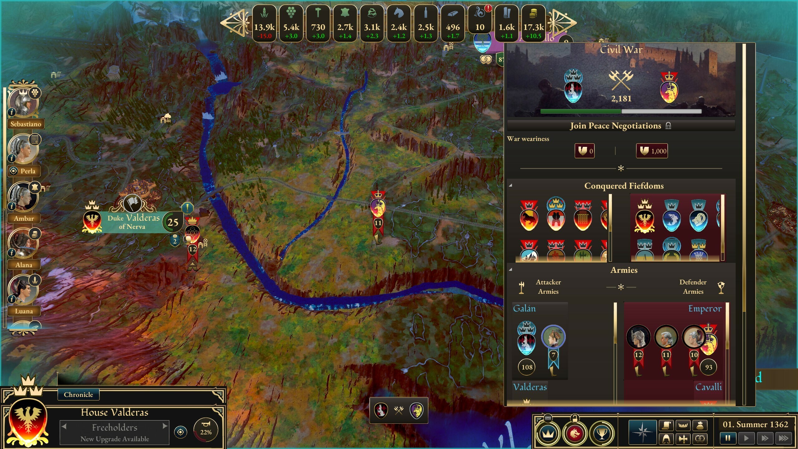 In essence, the Civil War in the game adds a deeper purpose and weight to your decisions. You have the freedom to embrace the old traditions or the new, the progress, and shape the kind of Calderia you wish to see. This also injects a sense of urgency into the gameplay and narrative. With other Houses also competing for power, if you aim to influence the future, you need to act fast! Strive to rise in the ranks and become a key player in the final conflict, or risk being manipulated as a mere pawn in others' schemes. Your path could lead to independence or even to becoming the Emperor's right-hand as the Viceroy, if you will. During the Civil War, the Emperor will deploy vast armies to defend the rule of his lands while leading unique and exclusive units for his faction. A Calderian victory is impossible until the Emperor is cast out, you have to overthrow his forces. However, the Calderian side for independence must ultimately prevail in the overall conflict for the war to conclude in a victory.