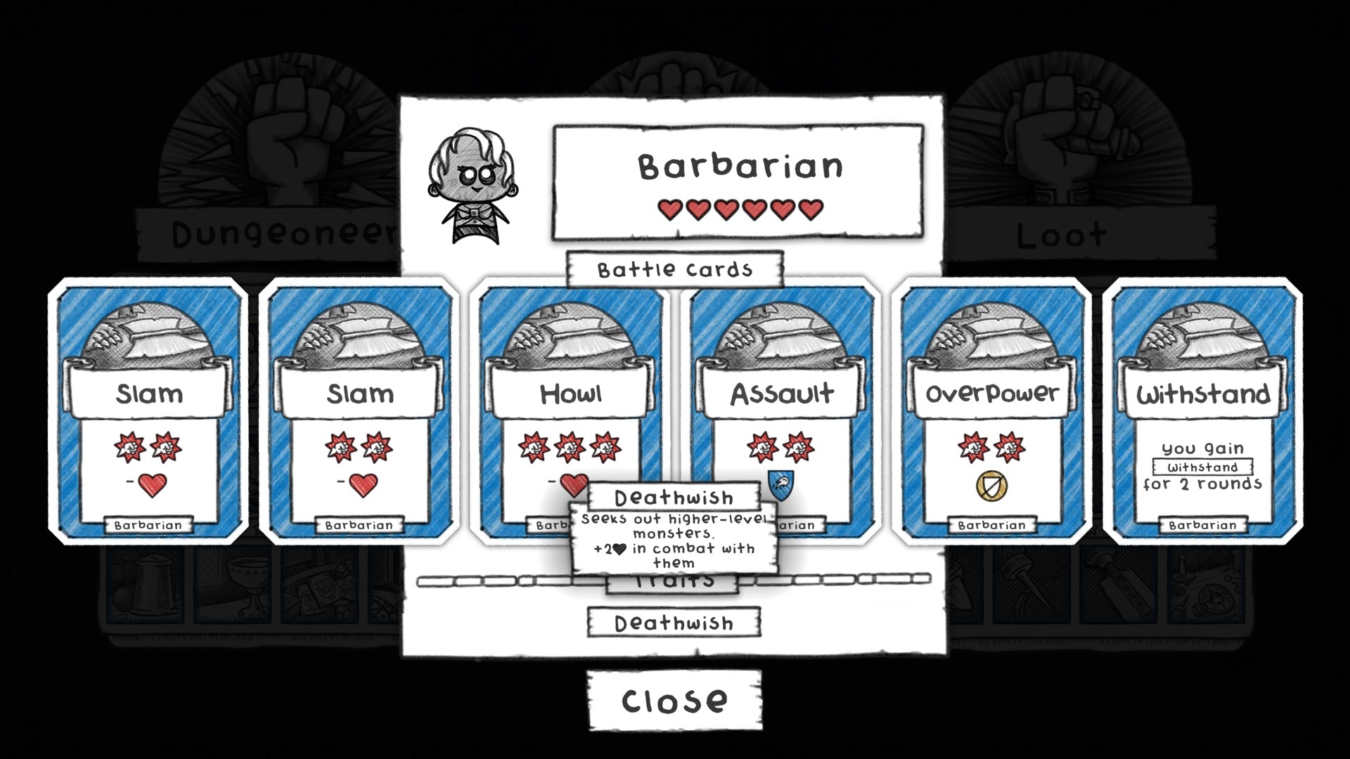 The Barbarian is a difficult class to play well but can also pull off unusual wins. They get bonuses against harder monsters and have a unique move to buy two turns of invulnerability. We also left them unchanged from Guild Classic.