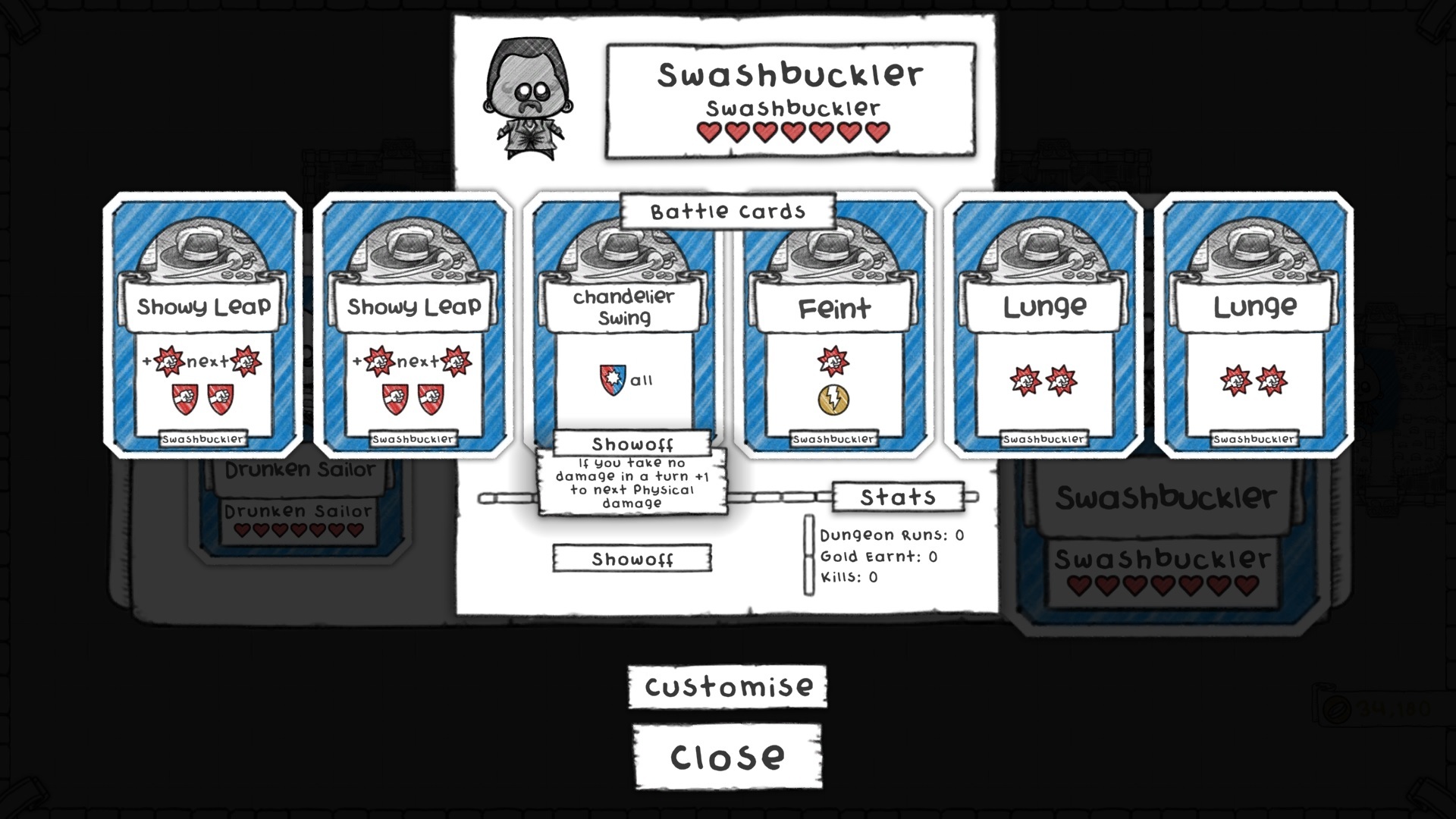 The final reward class given just before you reach Tier 3 enemies needed a buff to make it in the Mines. We added +1 next physical damage to the two Showy Leaps, added Quick to Feint and made Chandelier Swing a block everything (previously it blocked 3 Physical).