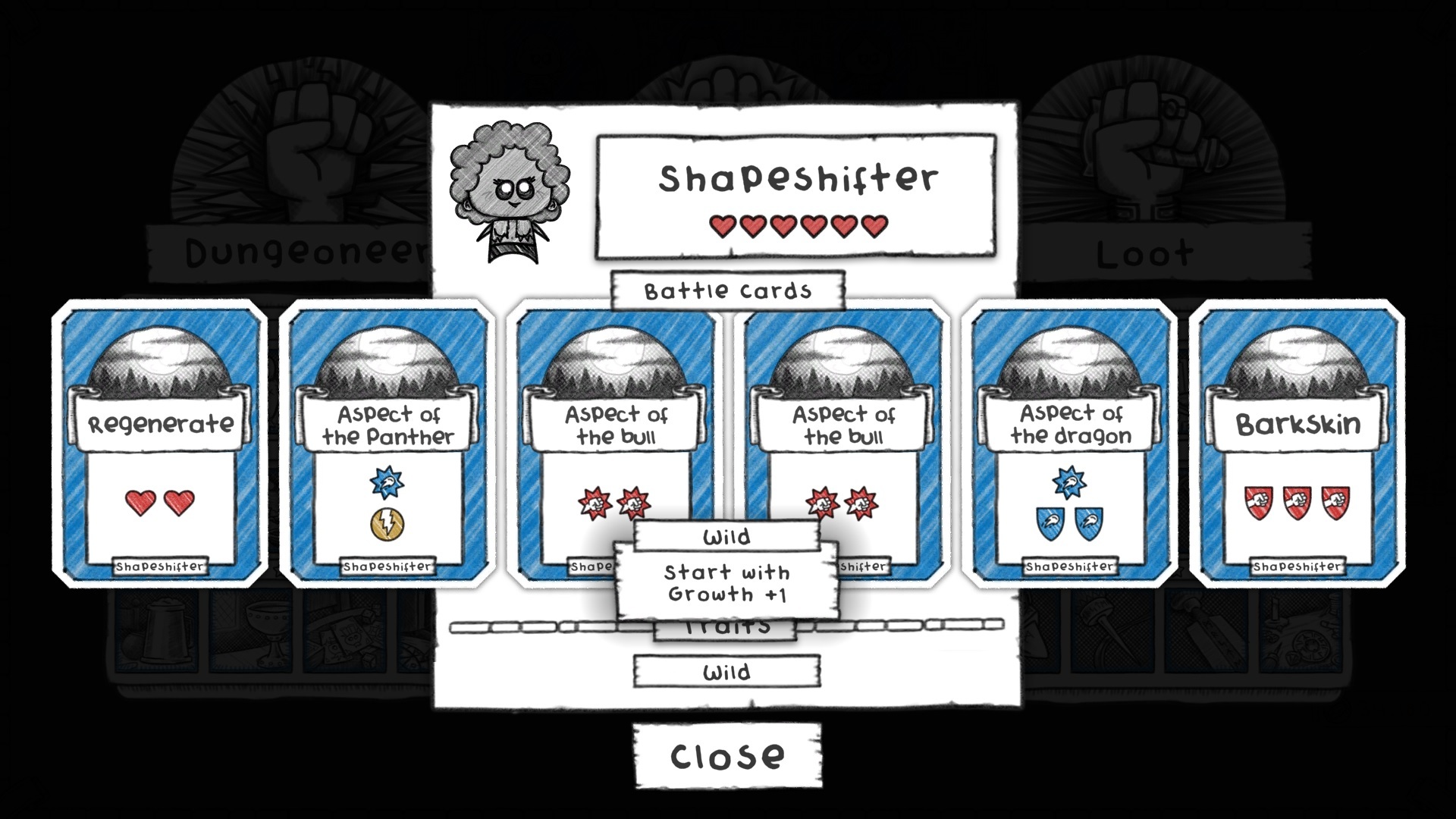 The Shapeshifter is a versatile Tier 2 class that can take on a variety of dungeons and partners well with lots of equipment, though starting with Growth +1 does suggest grabbing some early Growth equipment. We changed one teensy thing by making their Aspect Of The Panther card a quick attack instead of unblockable.