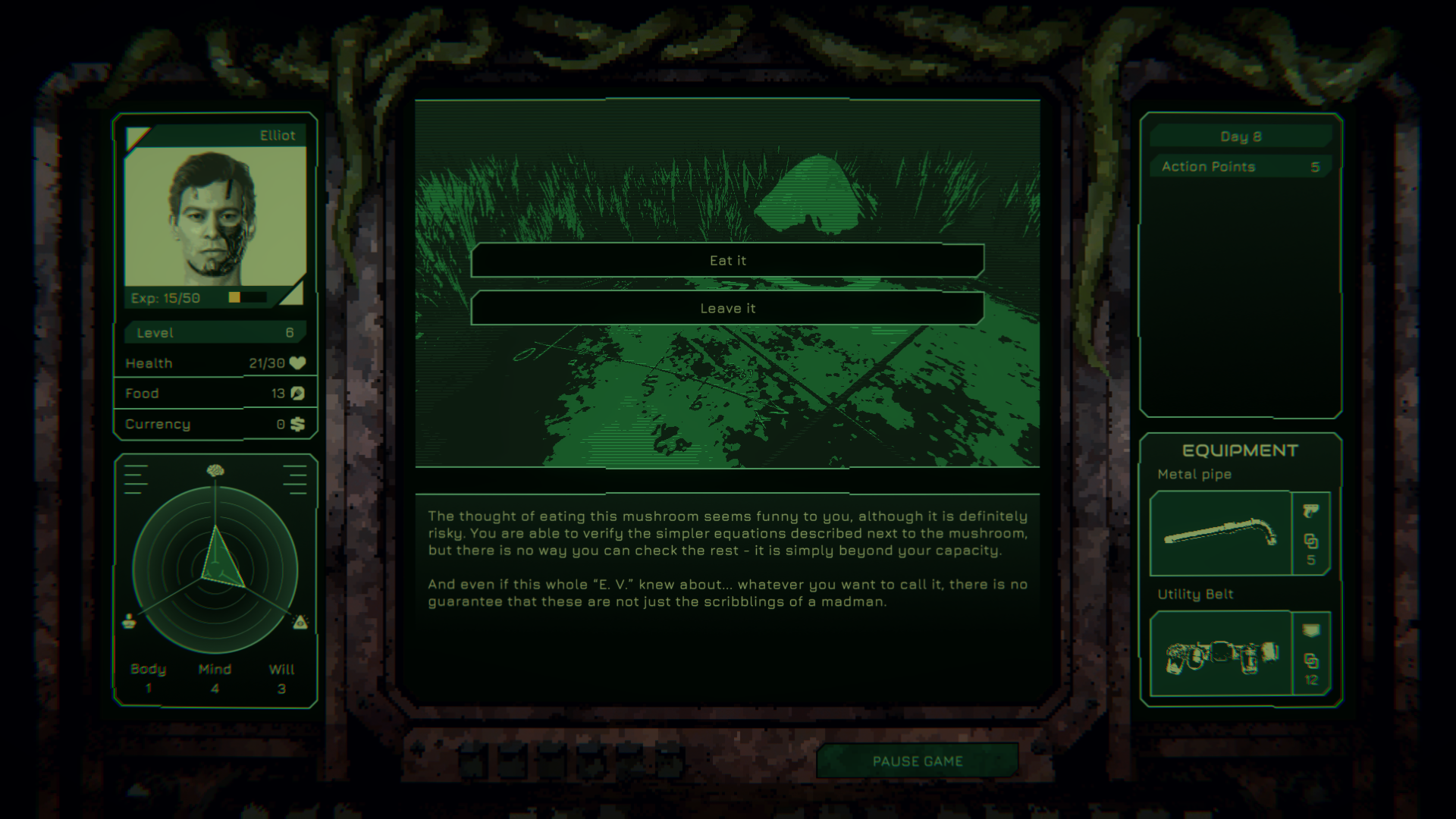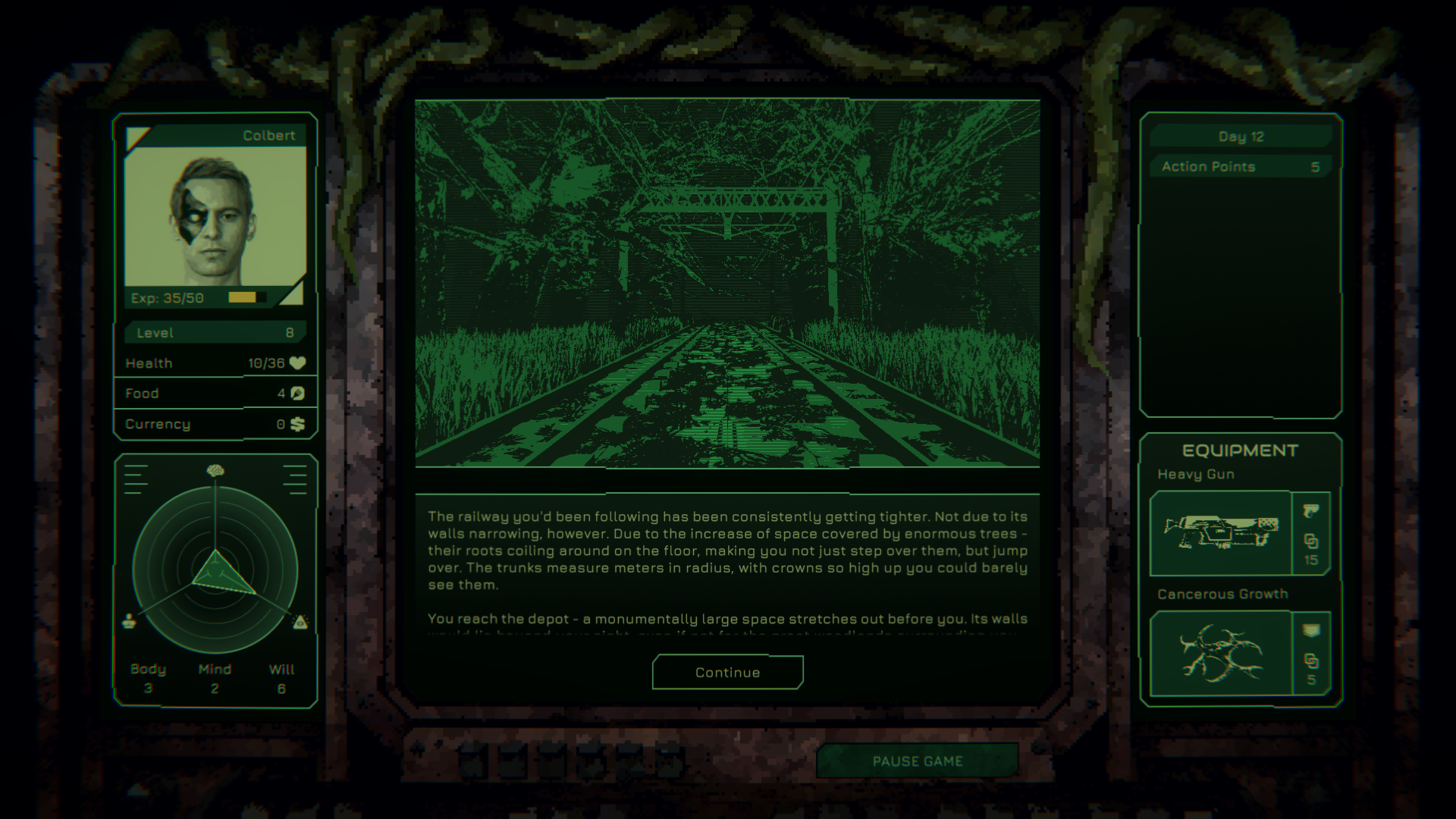 Gameplay unfolds in the rhythm of passing days. Each day you plan your route, choose events from a random pool, and decide how to spend your limited time and resources. Not every threat is visible at first, and the consequences of your decisions may return many days later.