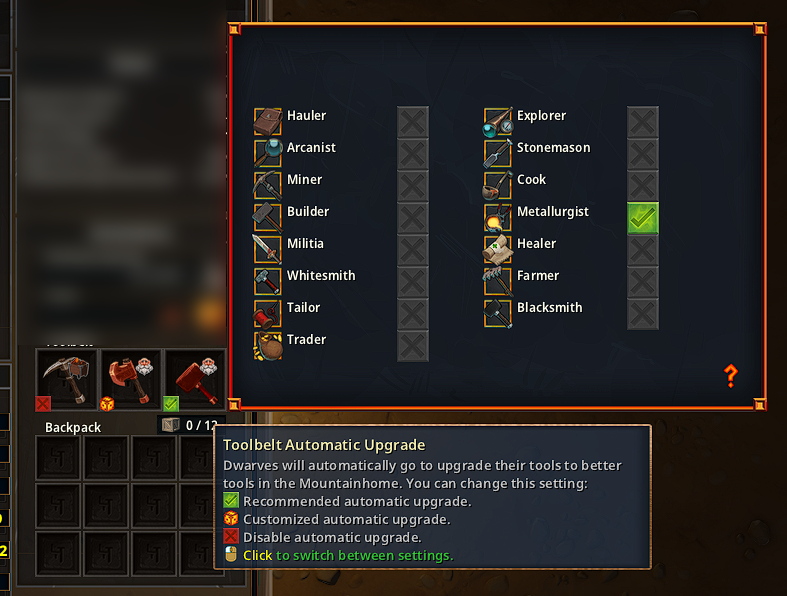 - An icon is now shown when a dwarf is about to equip a new tool in a slot. Related tooltips improved.