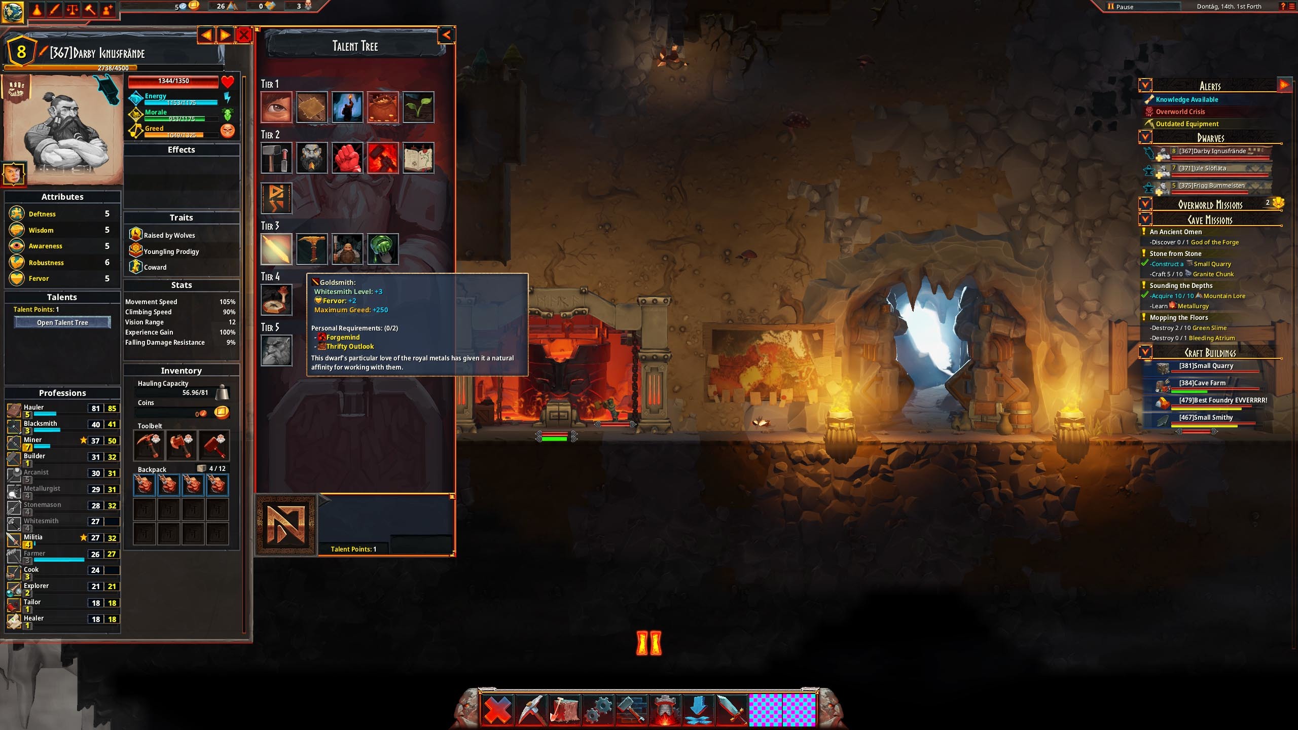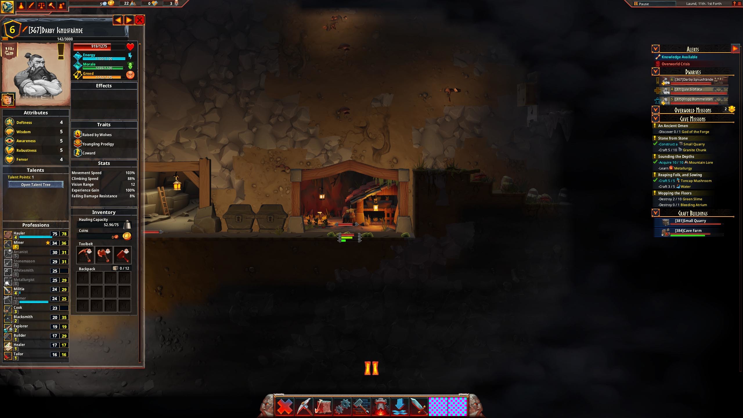 - Dwarf character screen now has a bar for the dwarf's XP.