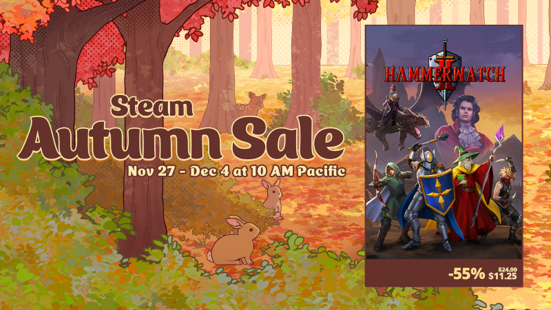 Hi all, If you or a friend have been wanting to give Hammerwatch II a try, it's now available for 55% off during the Steam Autumn Sale! Start your epic journey today. The sale only lasts for one week, so act fast.