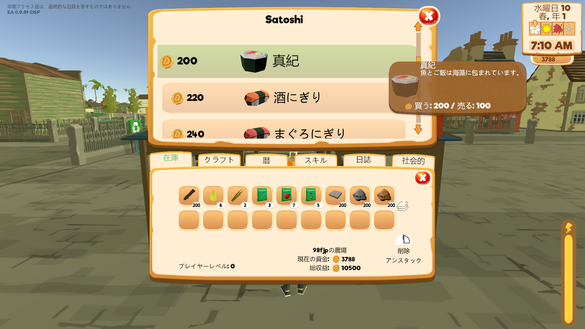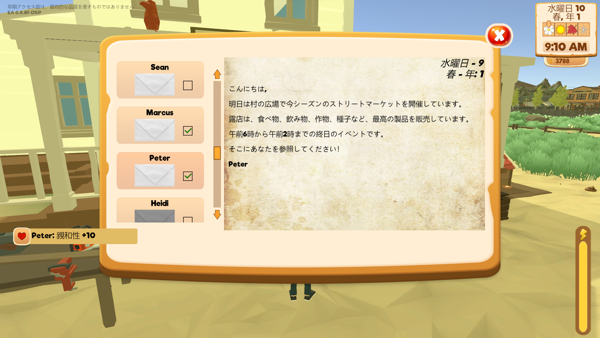 - Social menu: All villagers, street market vendors and artisan market vendors are shown.