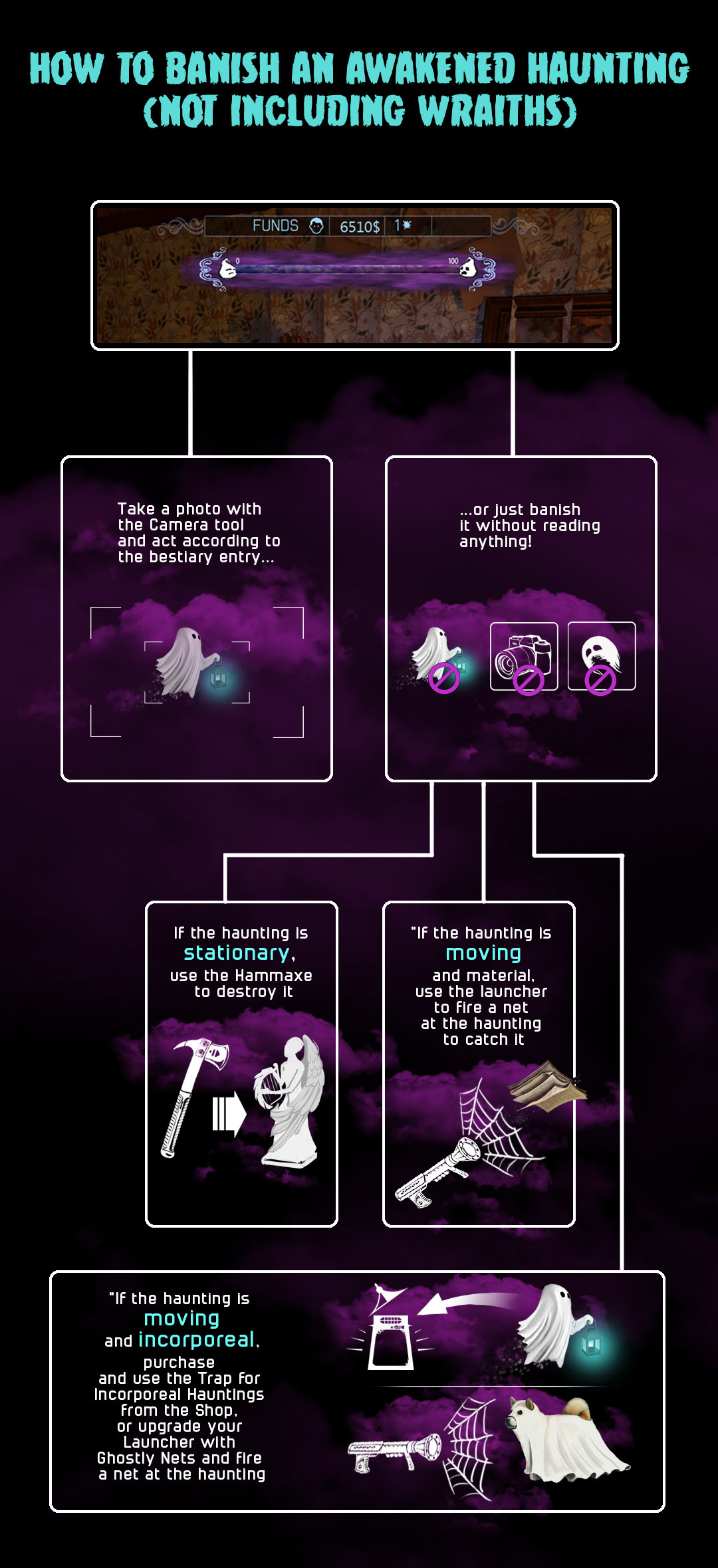 [code][i]Dev comment - This change doesn't remove old banishment options - they are still there. However, if you don't feel like reading a bestiary entry, you can now banish a haunting without even taking a picture of it. Note that this counts as a mean banishment.[/i][/code]