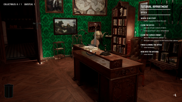We wanted to check if this fine cello is well-tuned, but it seems to escape our grasp. Both in the literal and brain-processing sense. When you investigate the haunted location, such items can be just the part of the ambiance generated by ghosts you are supposed to fight... but way more often indicate that there's something more to it. By following the hint and finding a way to "calm down" or maybe interact with the possessed object - those interactions will be very different depending on its type, you may as well pass a part of the overreaching puzzle, which will be essential to clean the house from some more advanced hauntings. Curiosity may be a cat killer, but for you is as important as your tools and skills.