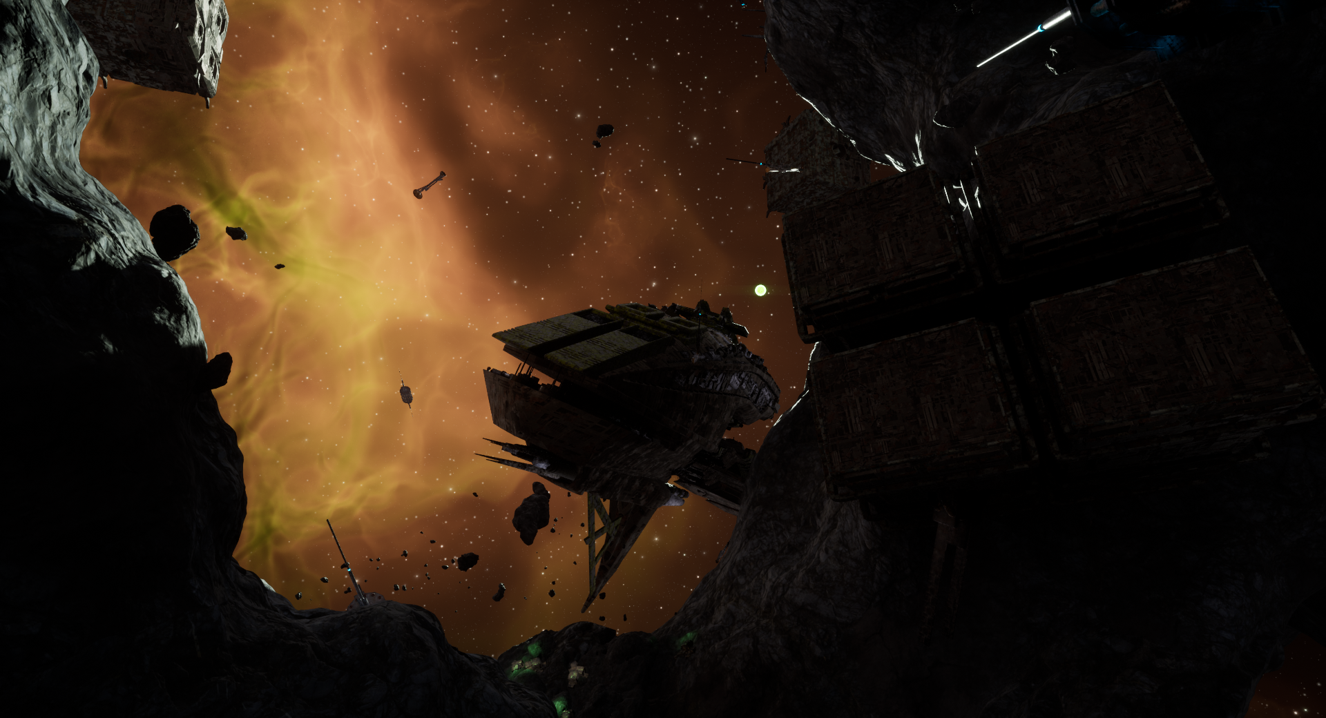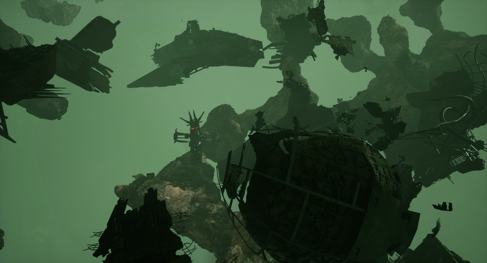 The Dumps are fragmented realms of decay. Space debris drifts among crumbling structures that dissolve into the void. While this desolate environment might yield some valuable loot, it more often reveals the remnants of unborn raiders, decomposed hybrids, relics of a vanished humanity. Massive wrecks of capital ships lie dormant. The victorious salvage what they can to rebuild, while the defeated leave behind only faint echoes of lost brainwaves, scattered among the stars.