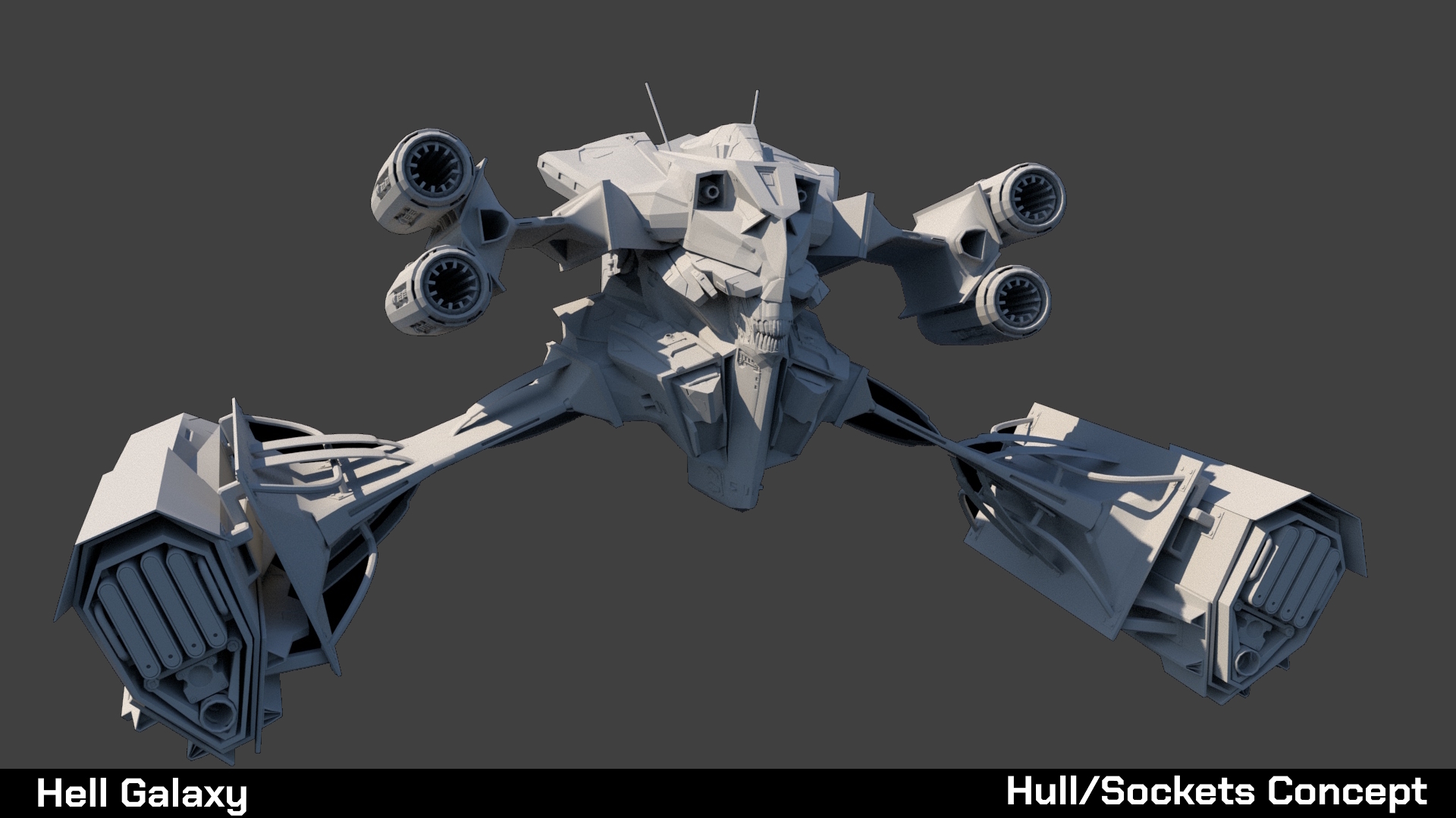 For the modules, we aimed to offer a diverse range of shapes and functions. Some were inspired by classic space combat game archetypes, while others were tailored specifically to the unique universe of Hell Galaxy. We took a similar approach with the hulls, creating a variety of designs to support different builds and aesthetics. This diversity reflects the advanced technological level of the human empire in Neterun's lore, a civilization capable of colonizing even the darkest corners of the universe.