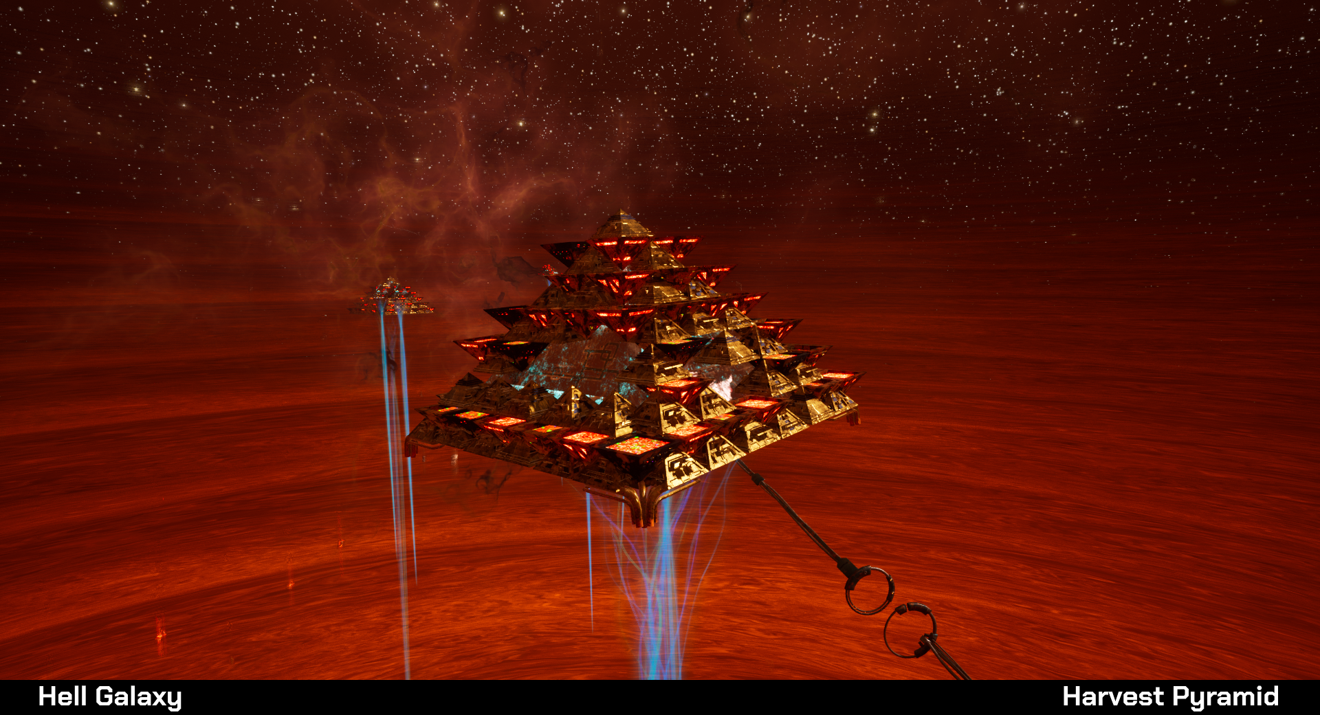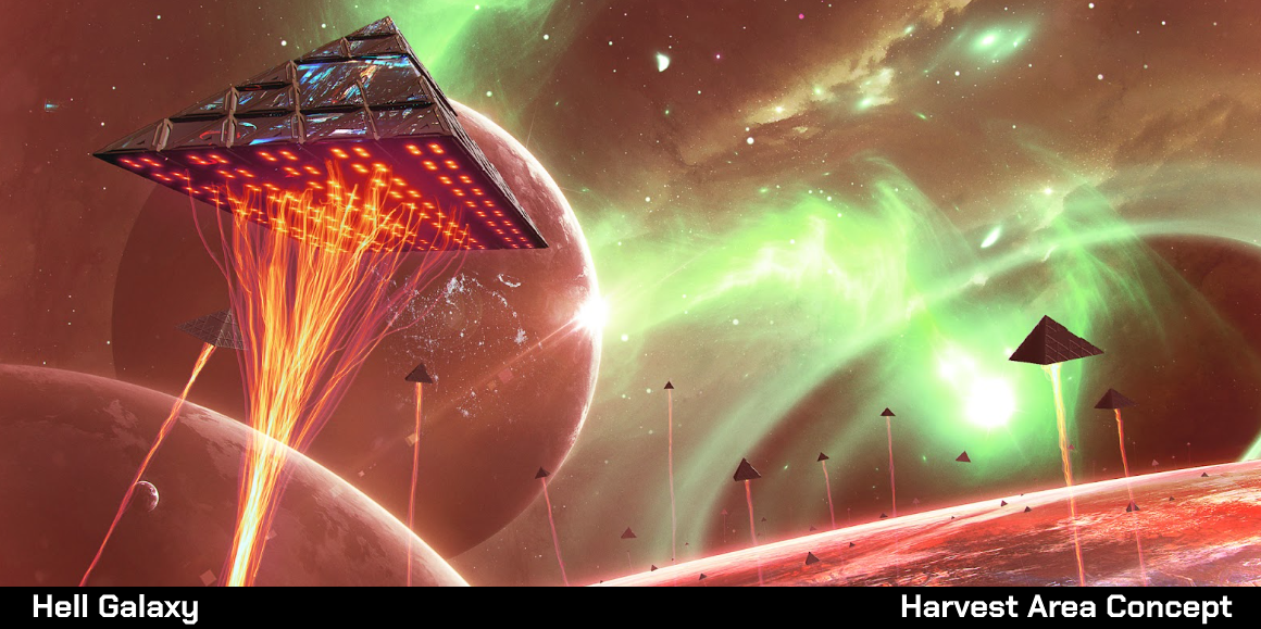 We wanted to associate resource gathering with a symbol of power, which is why we chose the pyramid shape. Each pyramid is stabilized by thrusters that keep it in place. Its smooth surface features a series of collection pockets designed to intercept and store resources. The material used to build these pyramids allows them to withstand the extreme conditions of the Guild Area, while the thrusters ensure they remain in optimal positions for resource gathering. The collection pockets have been a core element of the design since the very first concepts, featuring an interlocking structure that creates a striking, faceted surface.