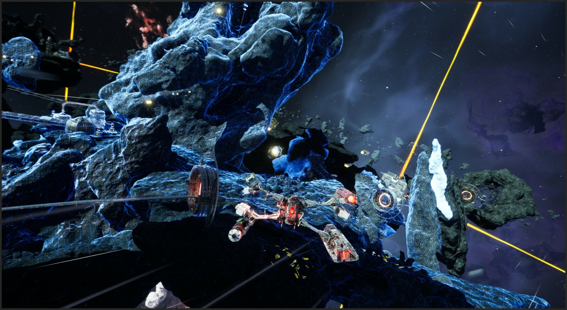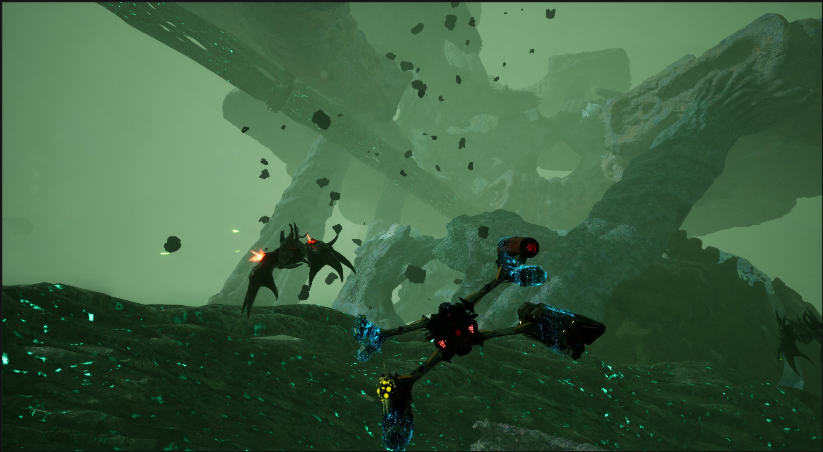 We are deepening our work on environments and lighting. We are grateful that many of you enjoyed the environments you saw in the demo, which we are expanding throughout the rest of the game. The Neterun galaxy reflects the state of the raiders, somewhere between machine and life. During their colonization, the Raiders built structures that reflect their lost imagination, using pieces of metal that invaded Neterun in lifeless clusters. But the galaxy is also inhabited by viable and dangerous creatures, not to mention the structures left behind by the Neterunians, the race that once inhabited the galaxy and is now gone. Again, this is only a glimpse in the demo, but in the game you will find other signs of this extinct race, as well as spaces where raider colonization has had to yield to the presence of dangerous creatures.