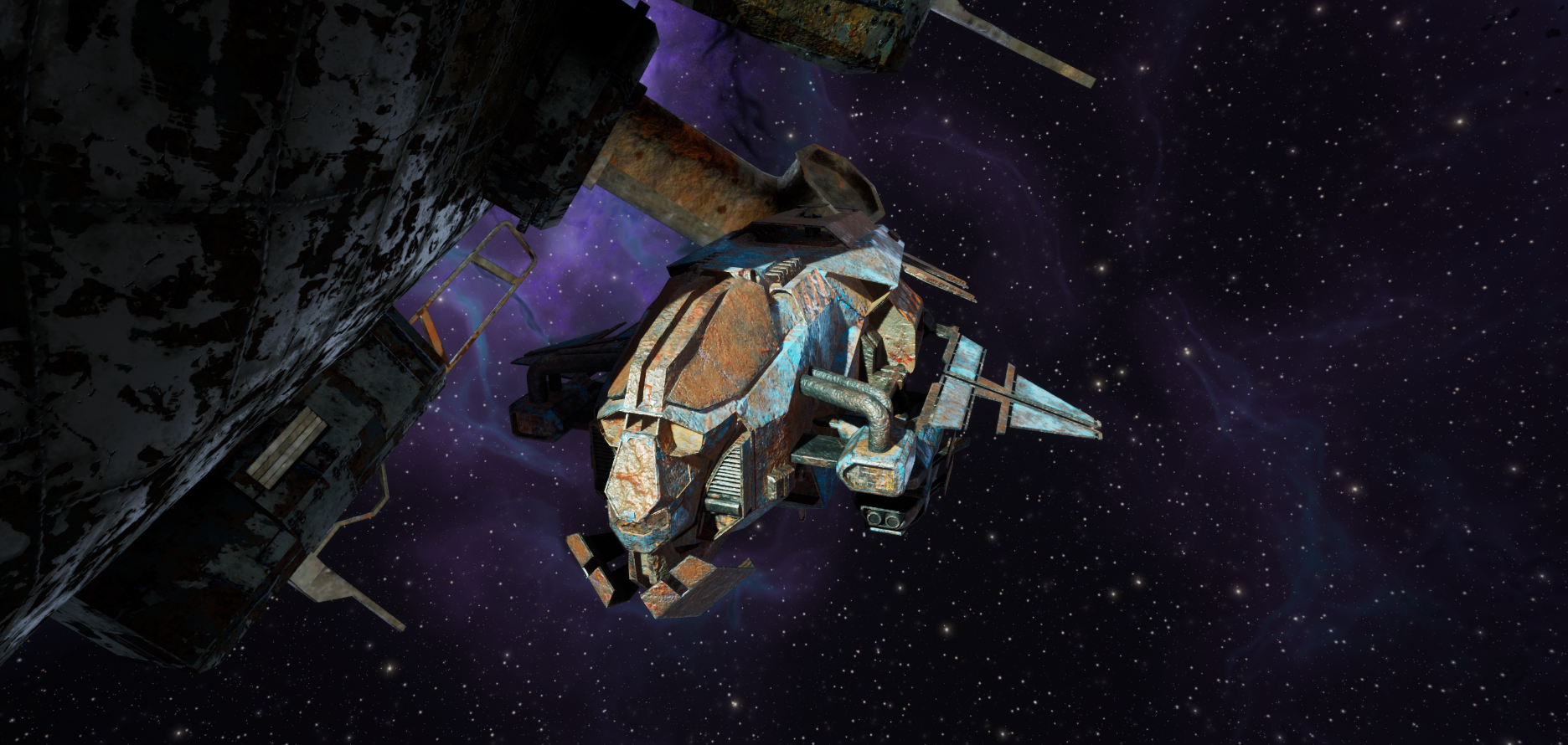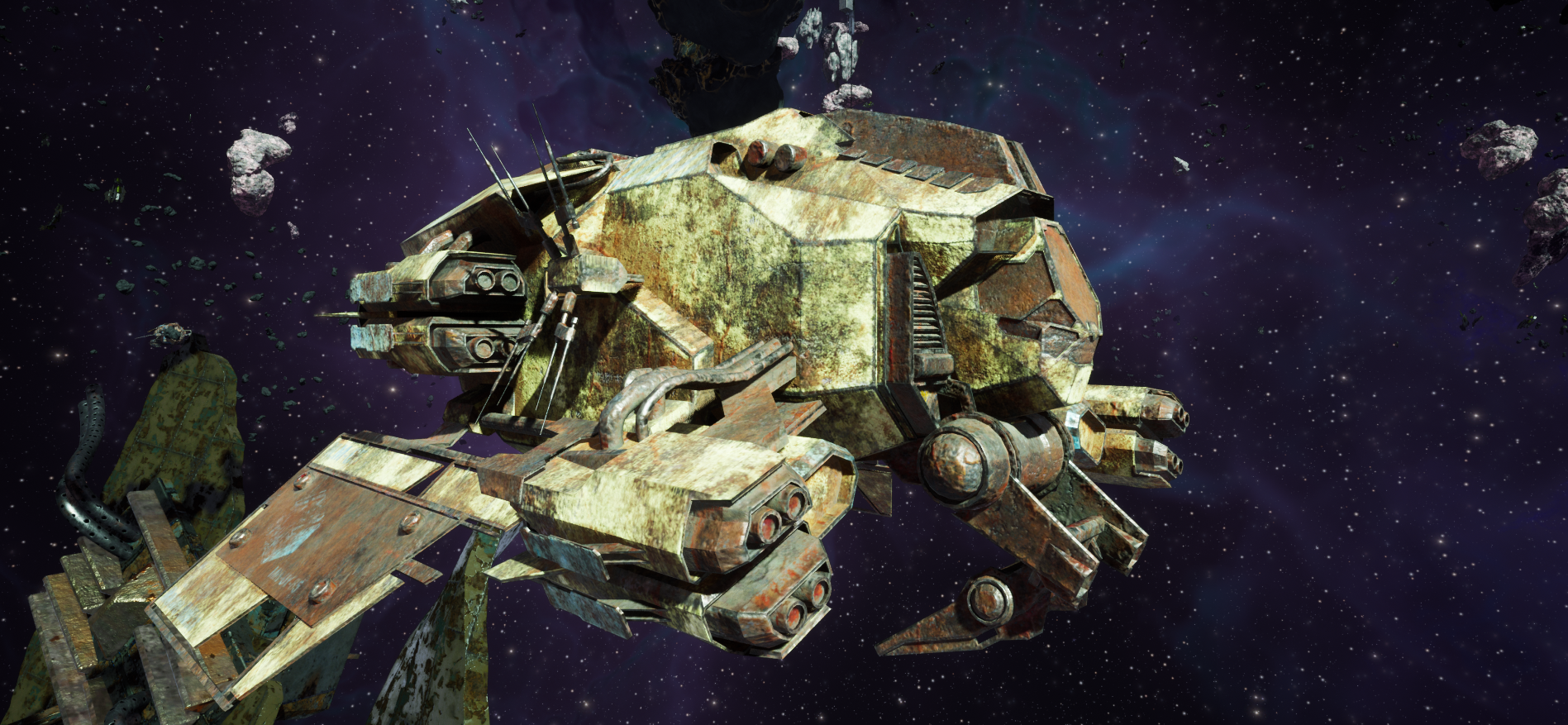 Antennas that no longer work, rusty weapons, old sheet metal, makeshift shields, metal grills surrounding old engines. We wanted models that, at first glance, would remind you of something ruined and abandoned, malfunctioning machines that suddenly reawaken. How does a biomechanical being decay? Our answer is the E-Was ships.