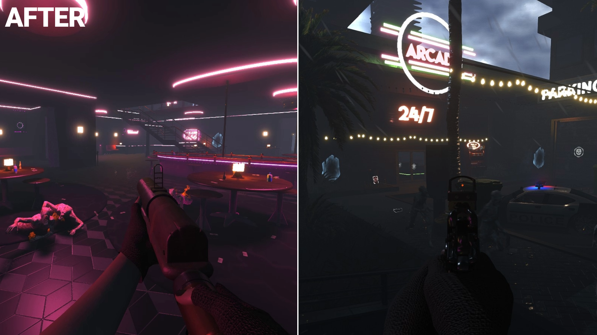 We're excited to share another sneak peak of the new game graphics. This time, we’re showing off Midnight Monsoon, which some of you may remember as the first map you got to play in our demos. Ash, the solo developer behind Hellbreach, has been hard at work, and we're excited to hear what you think! [b]Goal:[/b] When creating the new look, Ash aimed to create a more expansive, more vivid world, capturing the grandeur and vibrancy of real Las Vegas streets. The theme is now more distinctly Vegas-centric, which hopefully aligns better with your expectations. Instead of a post-apocalyptic hellscape, the game now portrays Las Vegas as a neon-lit battlefield, bustling with life but threatened by demons.
