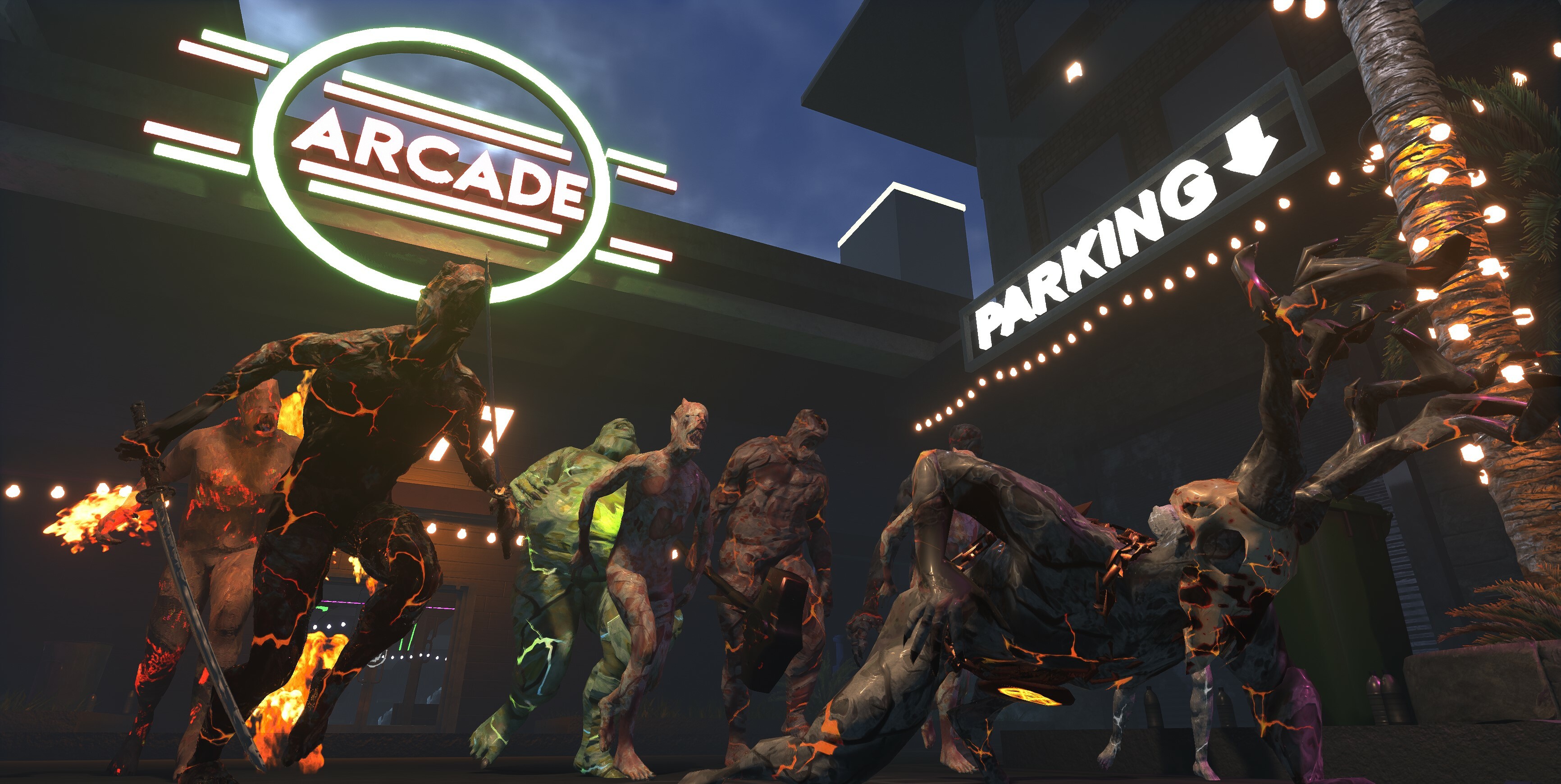 [b]Welcome back, we hope you recovered from your weekend in Vegas. To cool you down after an intense few days of playtesting, we’re bringing you some light reading today. In this blog, we’ll be diving into the Singleplayer and Multiplayer elements which Hellbreach: Vegas has to offer. We will be taking a deep dive into how we balance them, and how we try to tailor them to each player’s unique preferences. [/b] As we all know, there’s duality in gameplay experiences in the world of (wave-based) first-person shooters (FPS), between the thrill of a single person's achievements versus the banter and reliance of camaraderie in a Multiplayer game. Whether navigating the treacherous waves solo or banding together in a cooperative assault, our aim is to captivate you in both playstyles. Making both unique and fun to play. Getting the balance right between a solo run and a team-up in Hellbreach was a bit like walking a tightrope – thrilling but tricky. The real game-changer wasn't about beefing up the baddies but getting the numbers just right. It's all about the spawn rates and how many of those neon nightmares we let loose on the screen at once. For the lone wolves, it's a manageable mayhem, but throw in a squad, and you've got a full-on demon party. Whichever style you play, it's the crowd control that makes all the difference in the end.