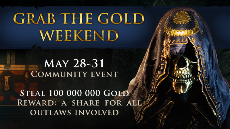 [b]Another weekend event returns! With the guards thinned out, the time to strike has come. The goal is to steal 100 000 000 gold from the State before May 31.[/b] Every Outlaw that plays over the weekend will receive a share of the gold stolen. On Tuesday June 1 we reveal whether this great heist has been a success.