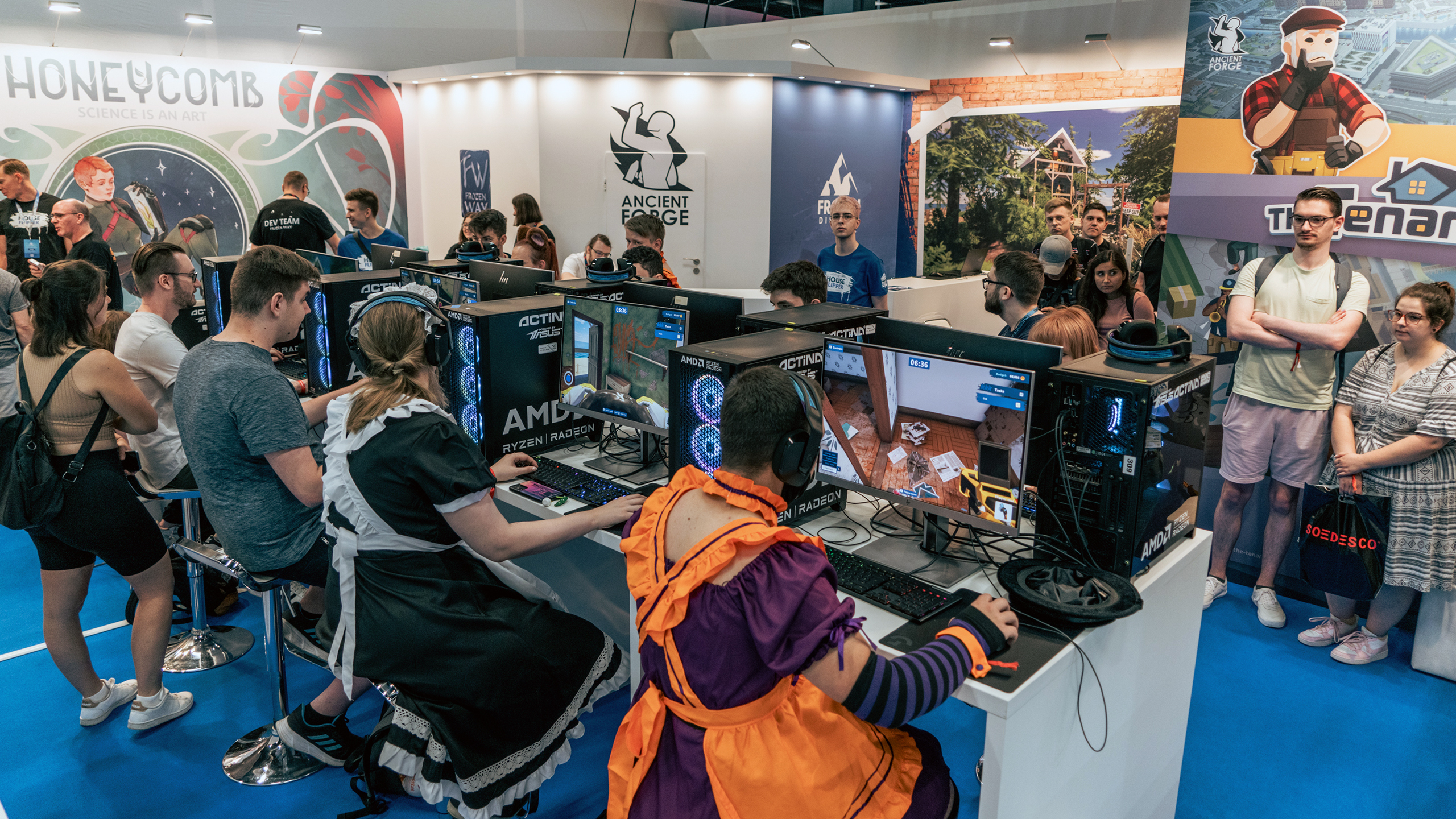 August 21 was officially the first day of the event... but! A special Frozen District team was tasked with appearing in Cologne a couple of days earlier to make sure everything regarding the construction of our booth as well as the technological support of it goes according to the grand plan. We all started packing, and the very first of our agents arrived in Cologne on August 19. The next morning, they approached the exhibition halls ready to check and report the situation! Fortunately, everything about the booth itself looked great, and we had some outstanding PCs waiting for us ready to be unpacked and put into action. The preparations got into top gear.